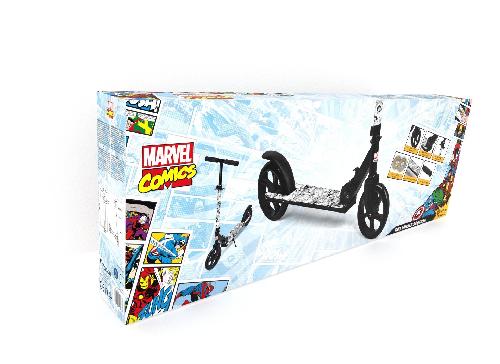 Dvoukolová koloběžka je ideální pro venkovní hry. Barevné postavy z animovaných filmů Disney udělají jízdu pro vaše dítě zábavnou. The wide range of handlebar settings makes it easier for larger or smaller children to ride the scooter. Gumové úchyty zvyšují pohodlí a platforma je vyztužena protiskluzovým materiálem, aby se zabránilo sklouznutí. Polyuretanová kola zlepšují odpružení při jízdě na nerovných površích a vysoce kvalitní ložiska ABEC-7 zajišťují plynulou jízdu. Koloběžka má nožní brzdu pro zvýšenou bezpečnost a snadný a pohodlný skládací systém.