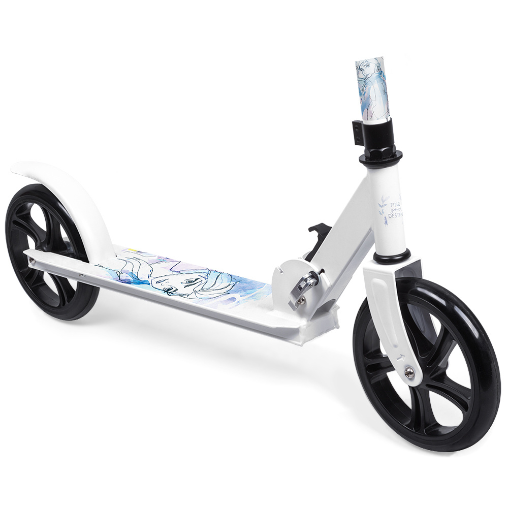 Dvoukolová koloběžka je ideální pro venkovní hry. Barevné postavy z animovaných filmů Disney udělají jízdu pro vaše dítě zábavnou. The wide range of handlebar settings makes it easier for larger or smaller children to ride the scooter. Gumové úchyty zvyšují pohodlí a platforma je vyztužena protiskluzovým materiálem, aby se zabránilo sklouznutí. Polyuretanová kola zlepšují odpružení při jízdě na nerovných površích a vysoce kvalitní ložiska ABEC-7 zajišťují plynulou jízdu. Koloběžka má nožní brzdu pro zvýšenou bezpečnost a snadný a pohodlný skládací systém.