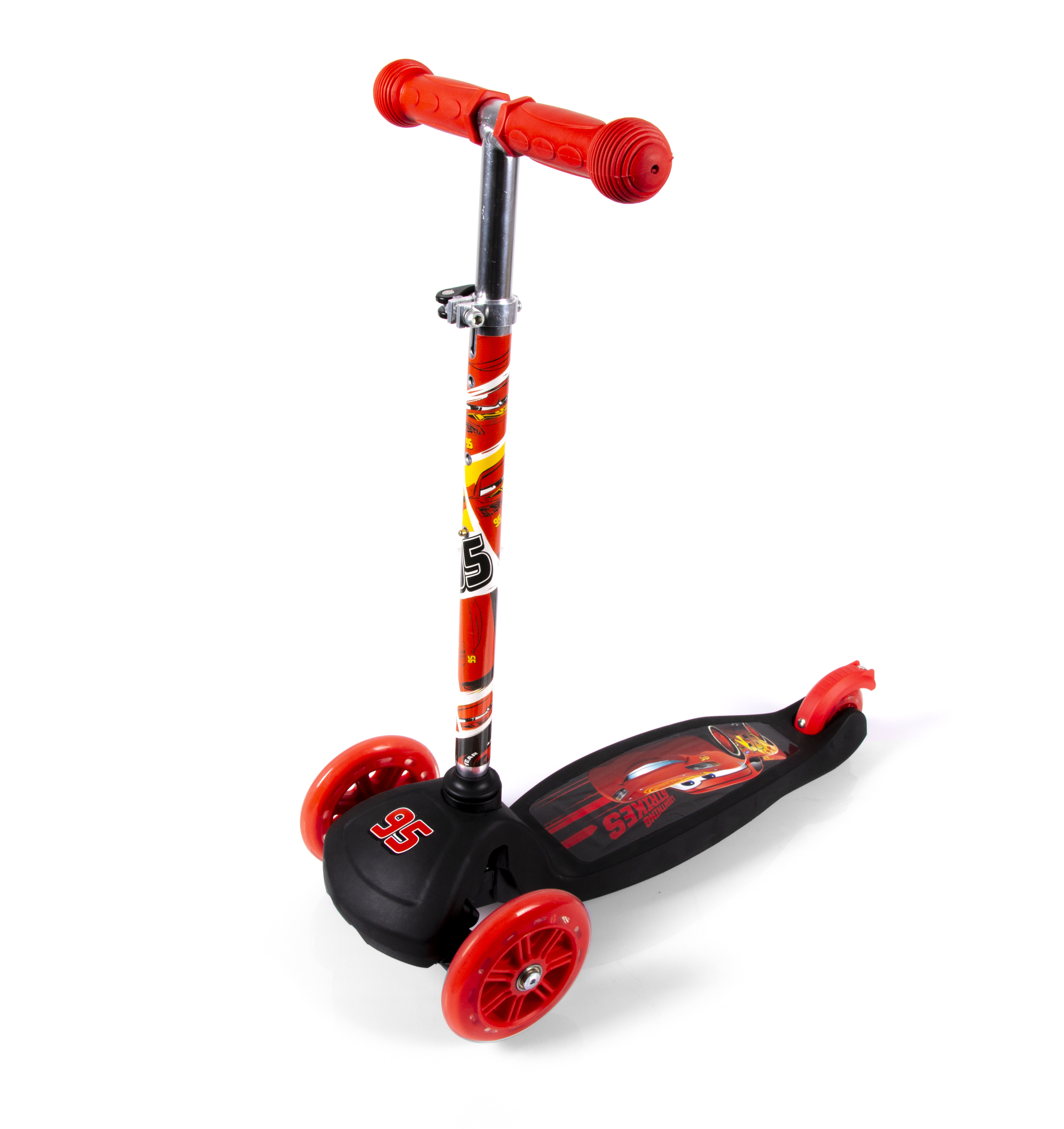 Koloběžka je ozdobena oblíbenými postavami z pohádek Disney, což dokonale rozvíjí dětský smysl pro rovnováhu. Díky nastavitelné výšce volantu je navržen jak pro kojence, tak pro starší děti. Unikátní mechanismus řízení umožňuje dítěti bezpečně vyvažovat své tělo během jízdy. It has a wide, reinforced base with a non-slip surface, and the construction is very durable. Polyuretanová kola zlepšují odpružení při jízdě na nerovných površích a vysoce kvalitní ložiska ABEC-7 zajišťují plynulou jízdu. Zadní nožní brzda zvyšuje bezpečnost a speciálně tvarovaná madla zvyšují pohodlí. The scooter has a simple folding system.
