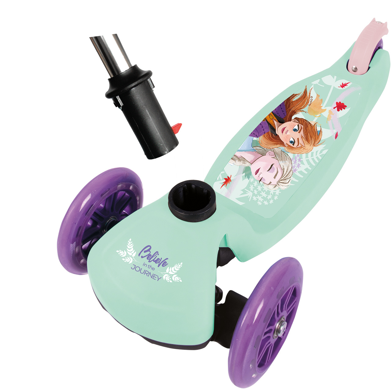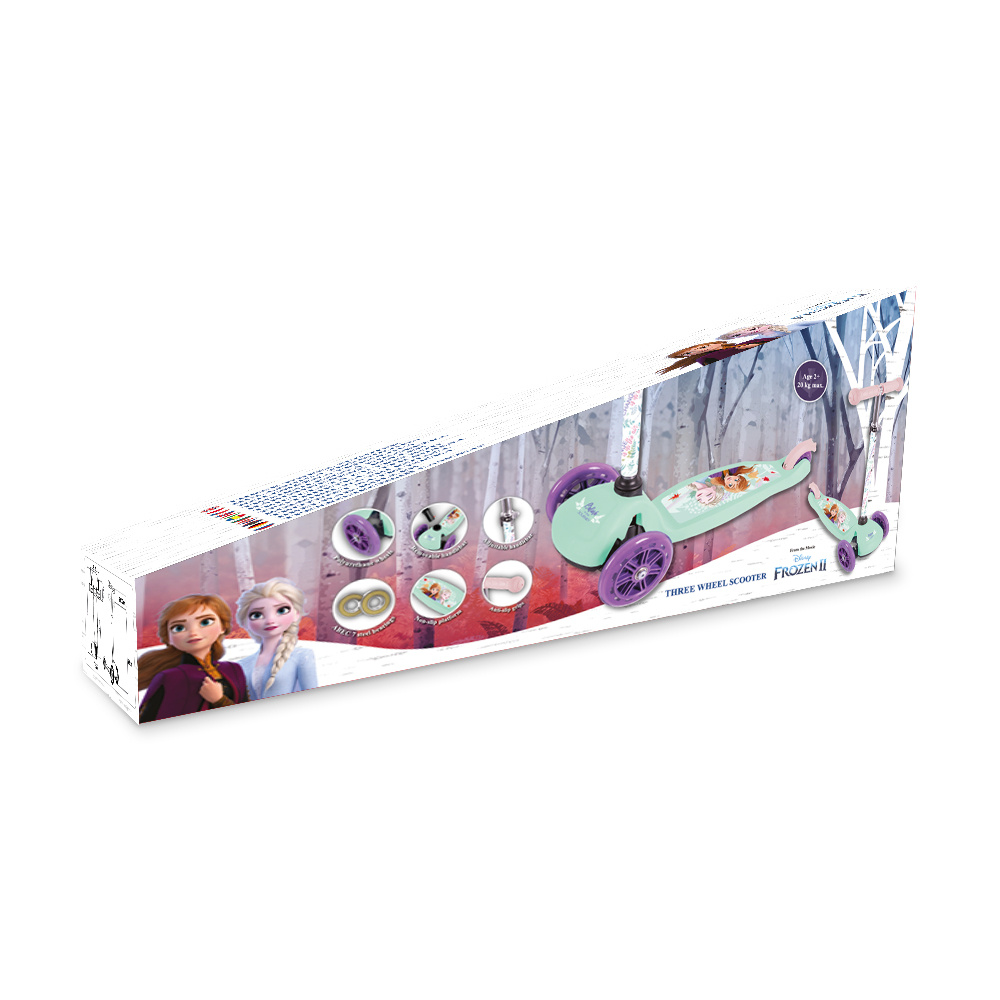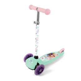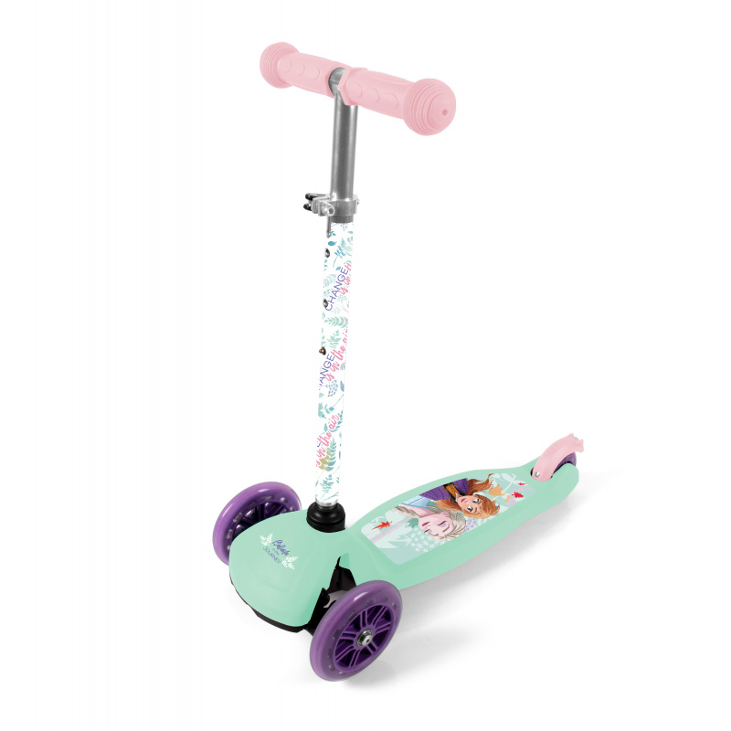 Koloběžka je ozdobena oblíbenými postavami z pohádek Disney, což dokonale rozvíjí dětský smysl pro rovnováhu. Díky nastavitelné výšce volantu je navržen jak pro kojence, tak pro starší děti. Unikátní mechanismus řízení umožňuje dítěti bezpečně vyvažovat své tělo během jízdy. It has a wide, reinforced base with a non-slip surface, and the construction is very durable. Polyuretanová kola zlepšují odpružení při jízdě na nerovných površích a vysoce kvalitní ložiska ABEC-7 zajišťují plynulou jízdu. Zadní nožní brzda zvyšuje bezpečnost a speciálně tvarovaná madla zvyšují pohodlí. The scooter has a simple folding system.