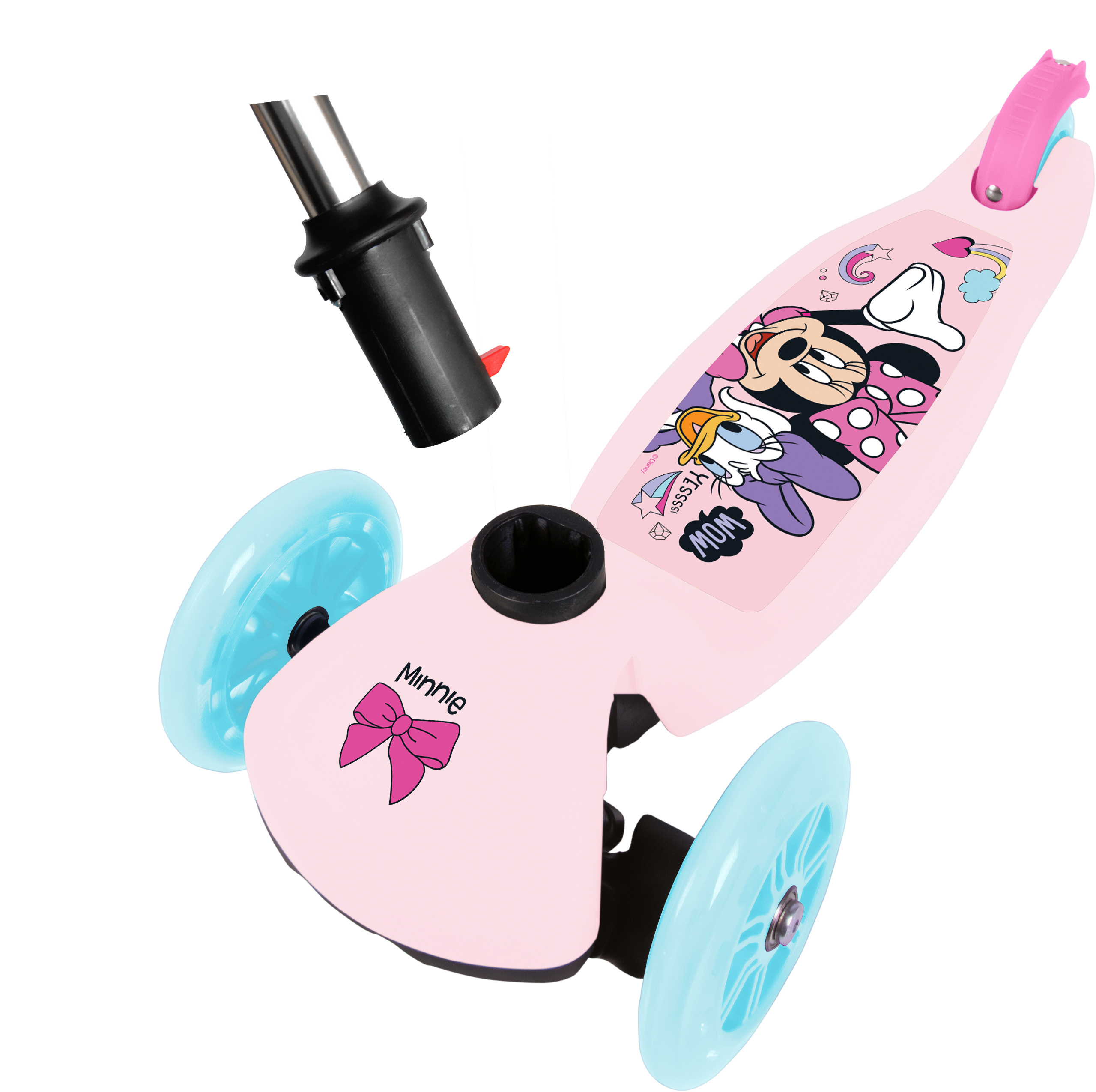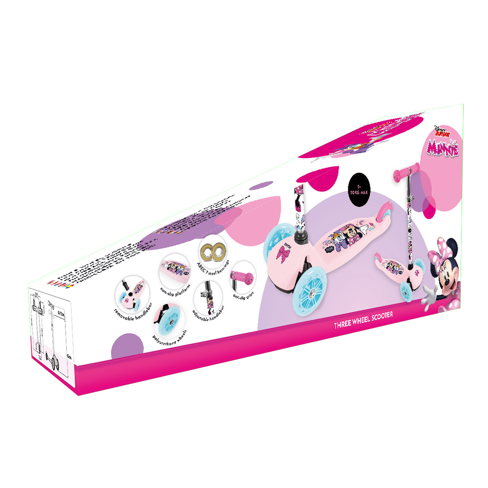 Koloběžka je ozdobena oblíbenými postavami z pohádek Disney, což dokonale rozvíjí dětský smysl pro rovnováhu.