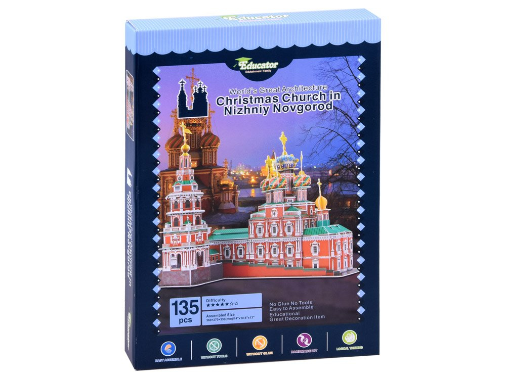 Stichsägen benötigen kein Werkzeug, sind leicht zu montieren und machen das Boot zu einem tollen Dekorationsstück. Die Puzzleteile werden auf Tafeln aus Spezialkarton gelegt. Das orthodoxe Modell der Kirche besteht aus 135 Elementen.
