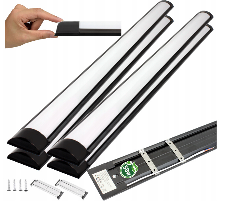 4x LED-Panels - schwarze Leuchte SLIM - 150cm - 50W - 230V - 5000Lm - neutralweiß