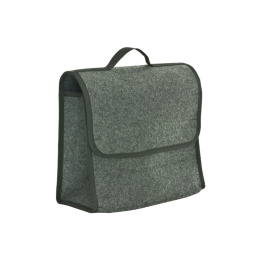 Uniwersalna torba samochodowa do bagażnika z wygodną rączką. Wykonana z wytrzymałego i odpornego na zabrudzenia materiału. Zapinana na praktyczny rzep. W środku obszerna komora w której możemy trzymać narzĘdzia, kosmetyki do auta, gaśnicę i wiele innych przedmiotów. Od spodu i z tyłu torba wyposażona jest w specjalne rzepy zapobiegające jej przesuwaniu w bagażniku w czasie jazdy samochodem. Wymiary: wysokość: 27,5 cm szerokość: 30cm głębokość: 14 cm