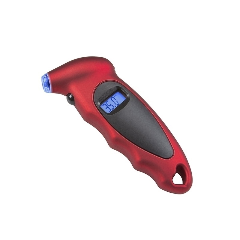 Cyfrowy ciśnieniomierz do opon pozwala na bardzo precyzyjne odczyty wartości ciśnienia w kołach. Duży, podświetlany wyświetlacz ułatwia odczytanie wyniku. Parametry techniczne: - typ: elektroniczny - skala manometru: Bar, Psi, Kg/cm2, Kpa - wyświetlacz: LCD - zakres pomiaru: 0,2 - 7 BAR - zasilany baterią CR 2032 3V - wymiar 137x 55x28 - waga 54g - ilość w kartonie: 100 szt.