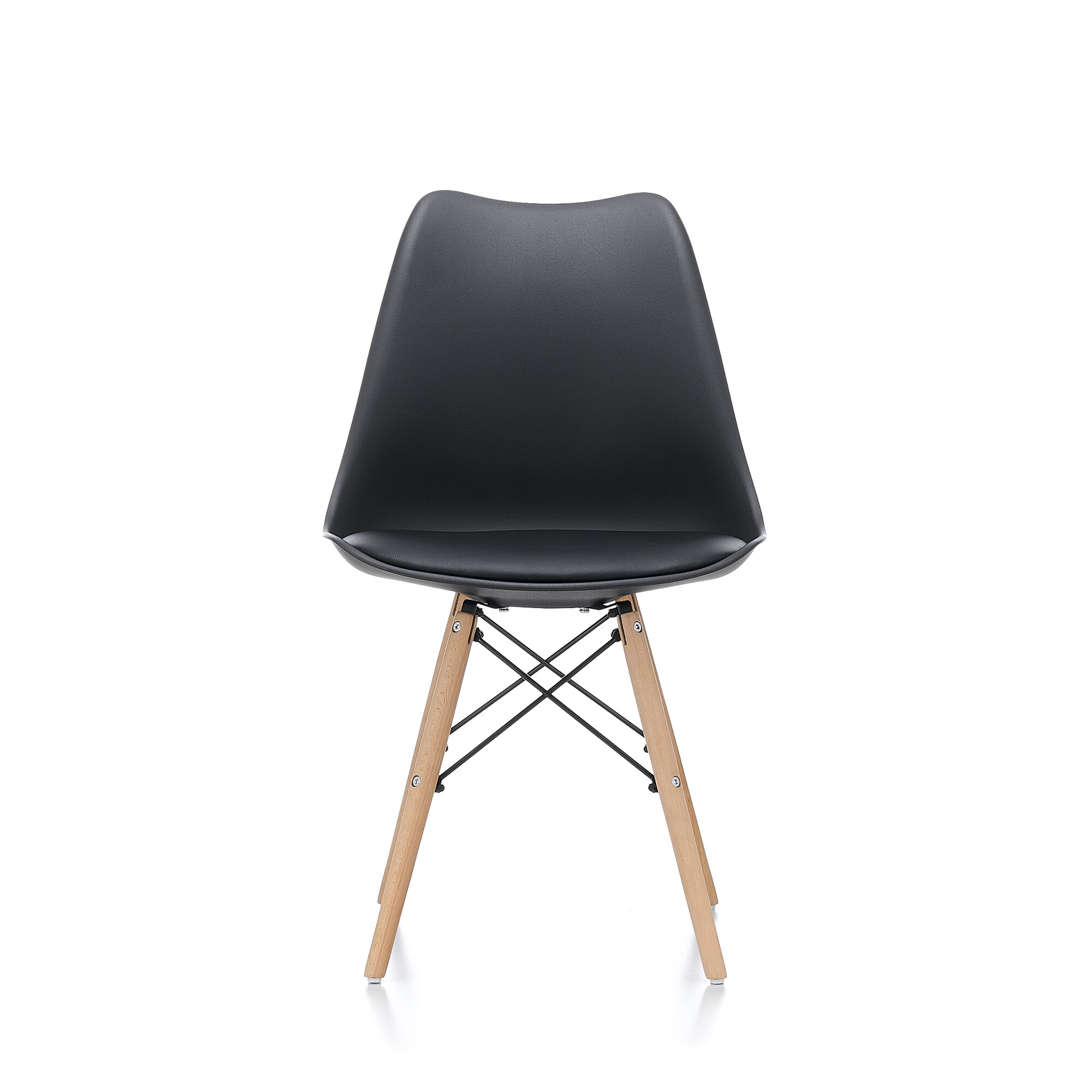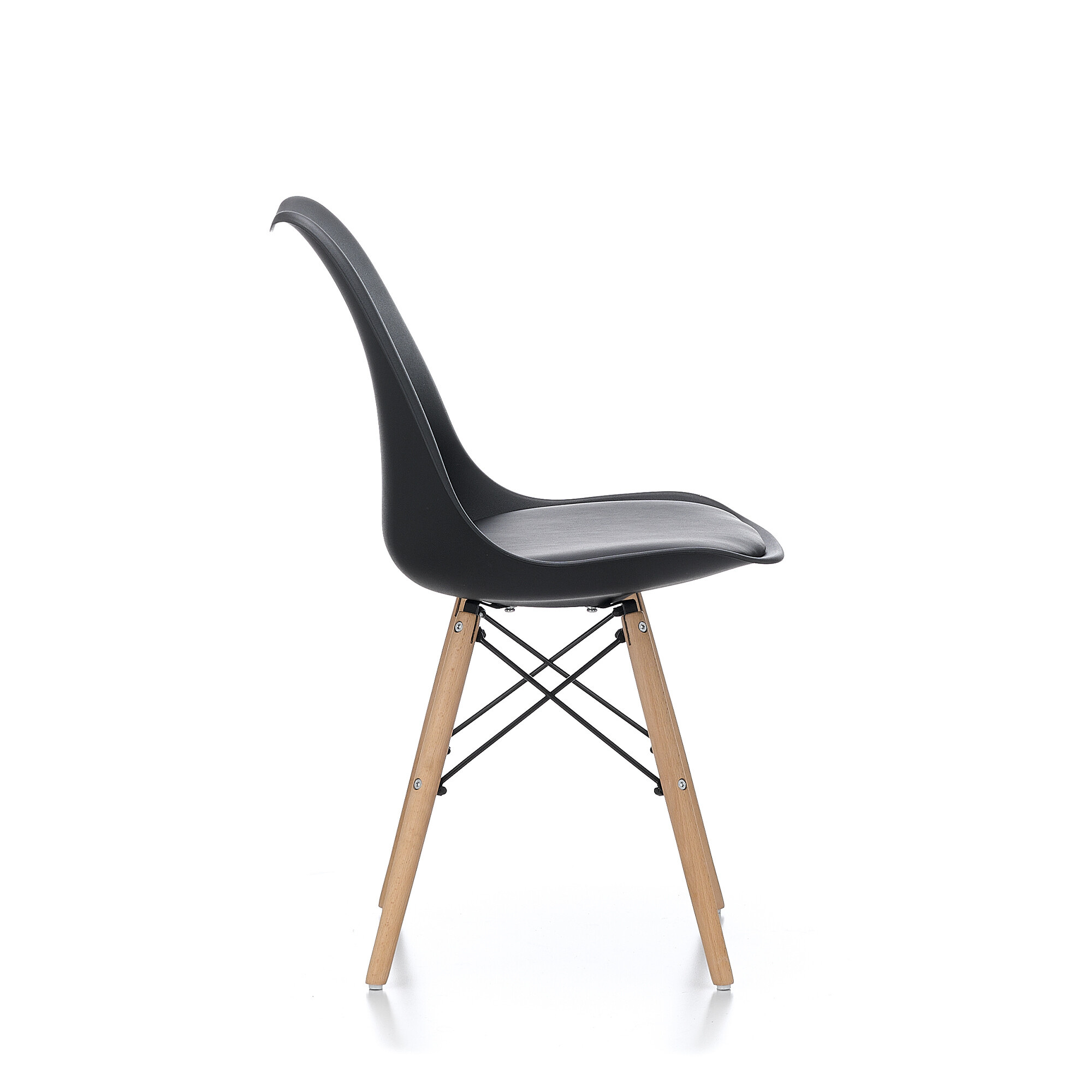 Der Stuhl ist aus hochwertigem und strapazierfähigem Polypropylen mit einem Kissen mit Kunstlederbezug in Kombination mit einem Buchenholzgestell gefertigt.