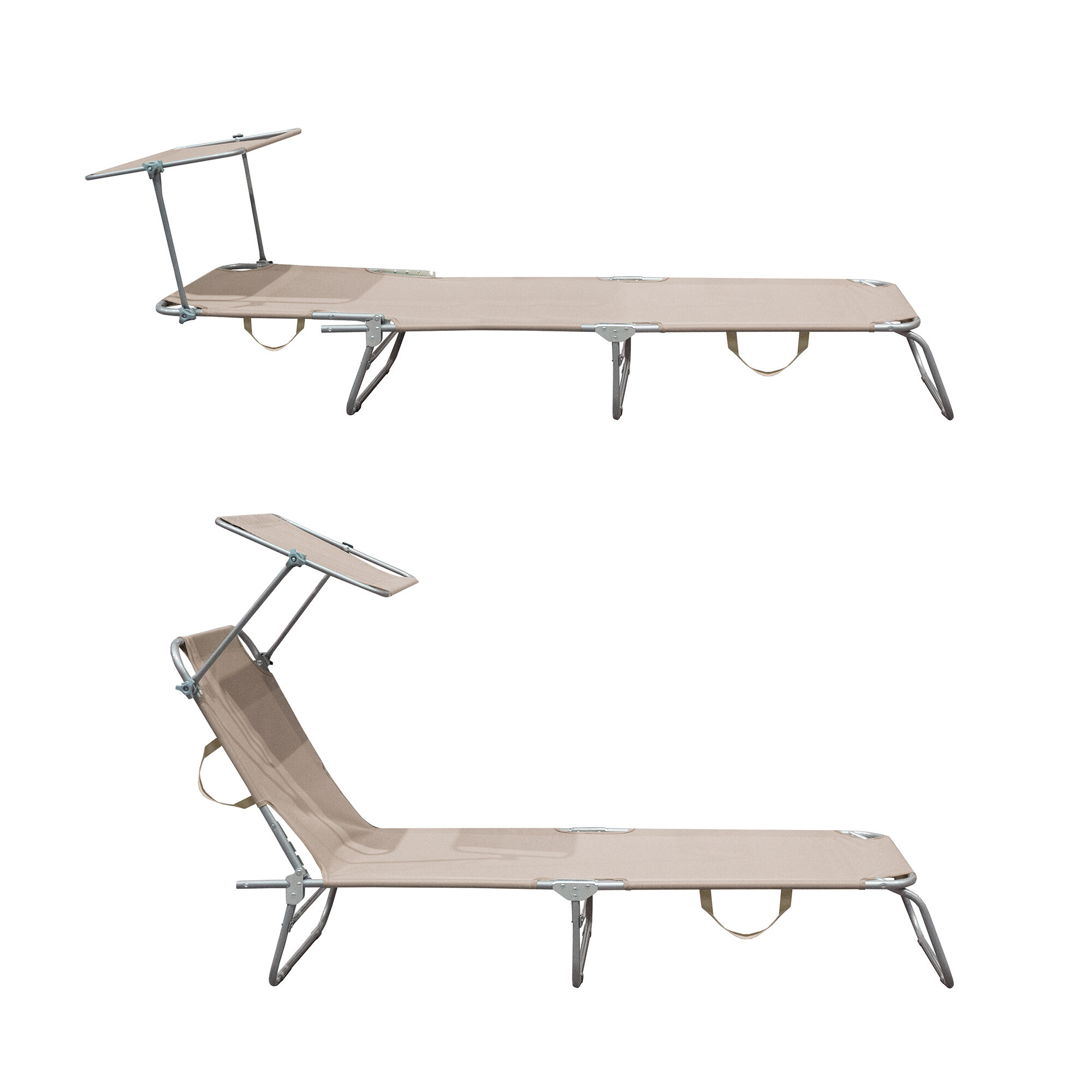 Zum Liegestuhl gehört ein abnehmbares Verdeck, das beliebig eingestellt werden kann und das Gesicht vor der grellen Sonne schützt.Die Rückenlehne der Liege kann in 4 verschiedene Positionen eingestellt werden.