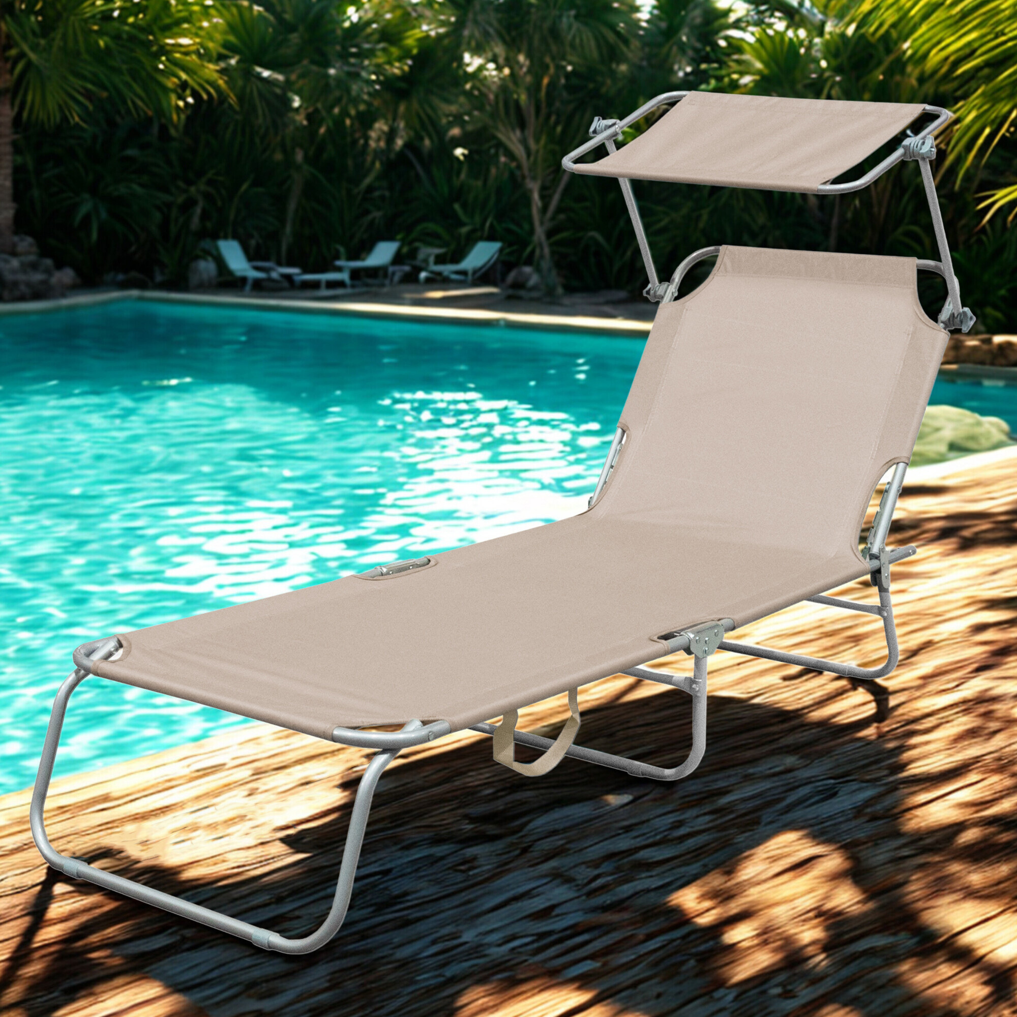 Klappbare Gartenliege mit verstärkter Stahlkonstruktion, in modernem Design, geeignet für Gärten, Camping oder Strände.