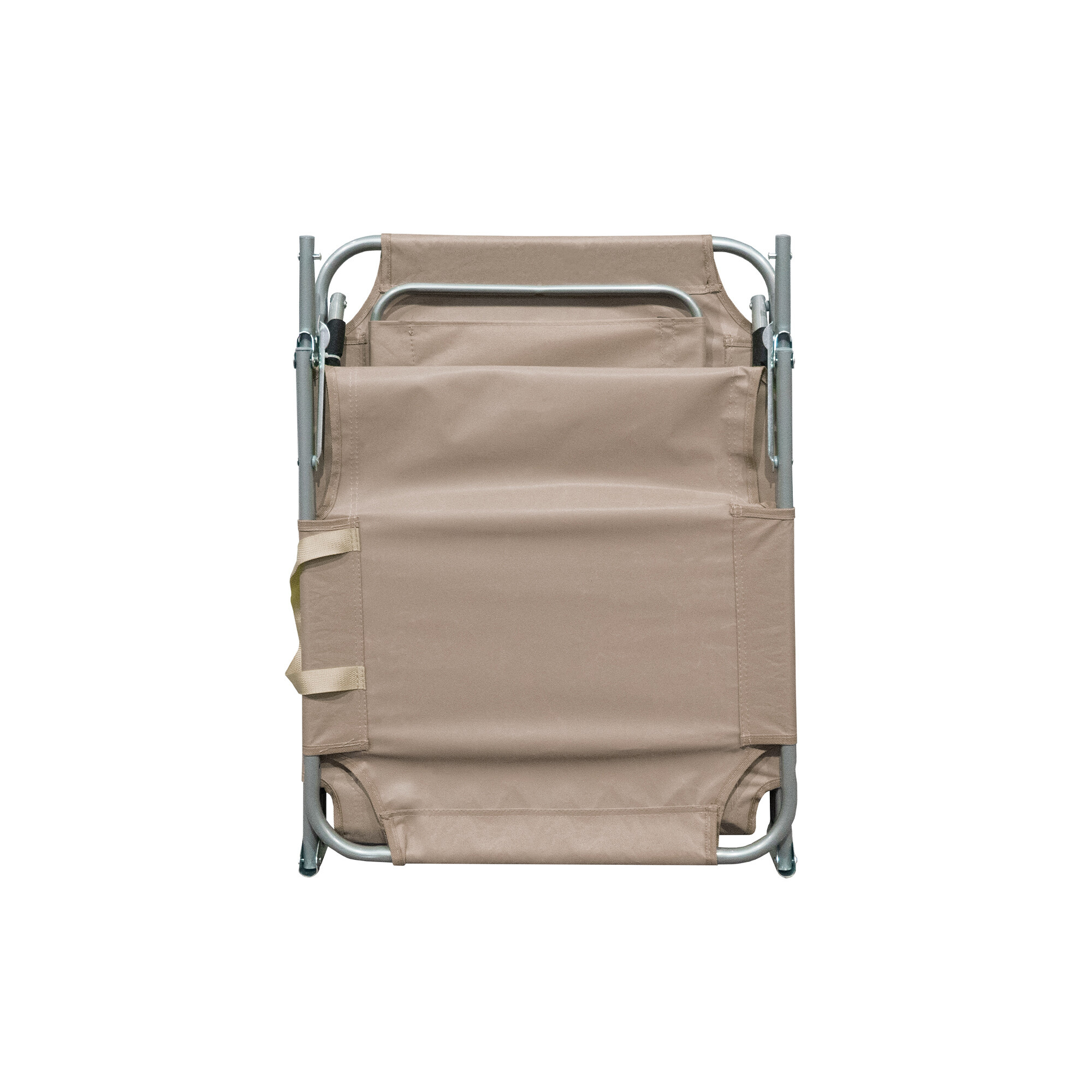 Die klappbare Konstruktion der Liege ermöglicht ein einfaches Auf- und Zusammenklappen. Stahlrohre mit einem Durchmesser von 18 mm gewährleisten hohe Widerstandsfähigkeit, Festigkeit, Stabilität und eine Tragfähigkeit von bis zu 120 kg.