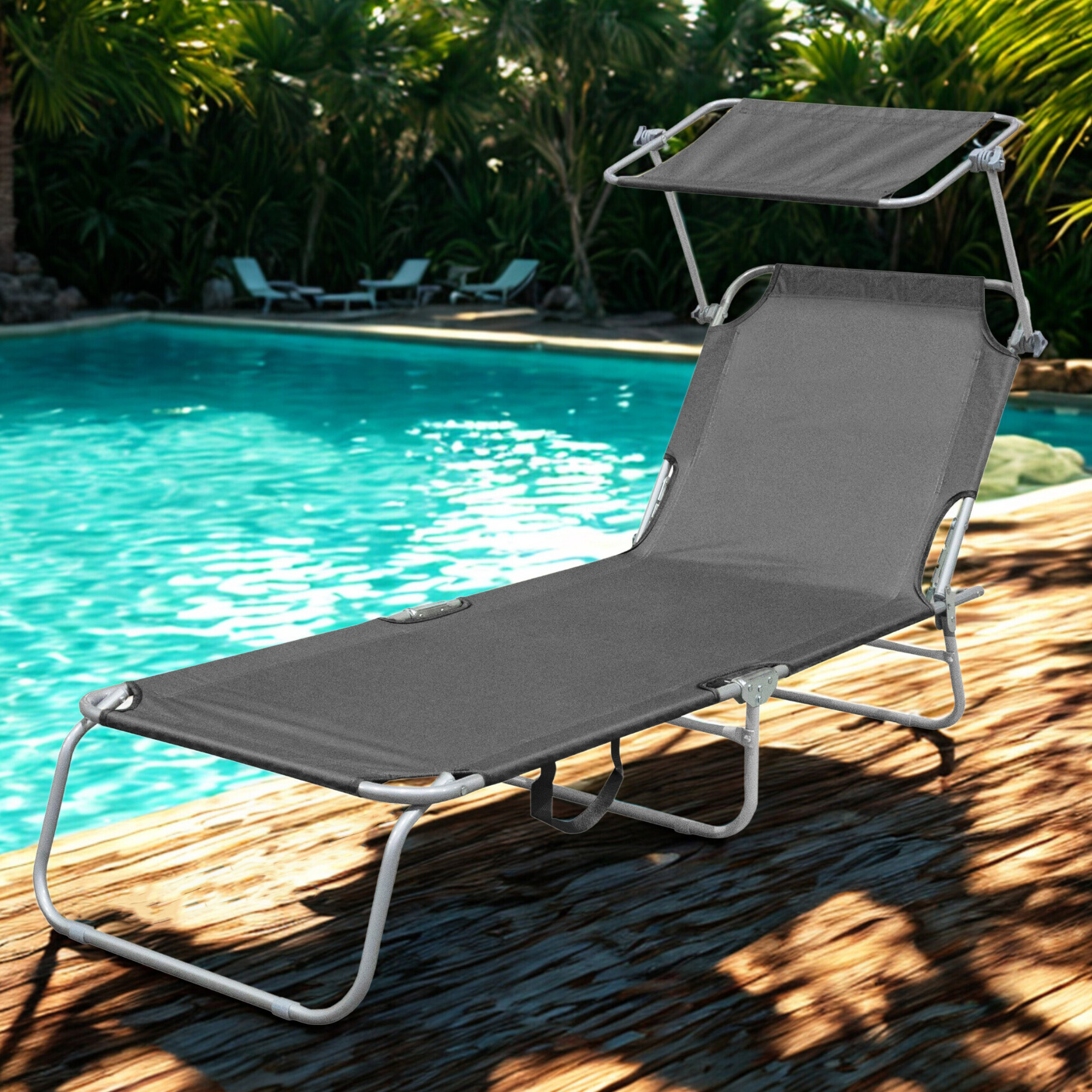 Klappbare Gartenliege mit verstärkter Stahlkonstruktion, in modernem Design, geeignet für Gärten, Camping oder Strände.