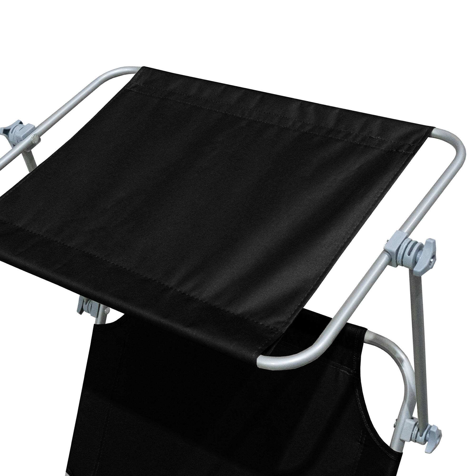Zum Liegestuhl gehört ein abnehmbares Verdeck, das beliebig eingestellt werden kann und das Gesicht vor der grellen Sonne schützt.Die Rückenlehne der Liege kann in 4 verschiedene Positionen eingestellt werden.