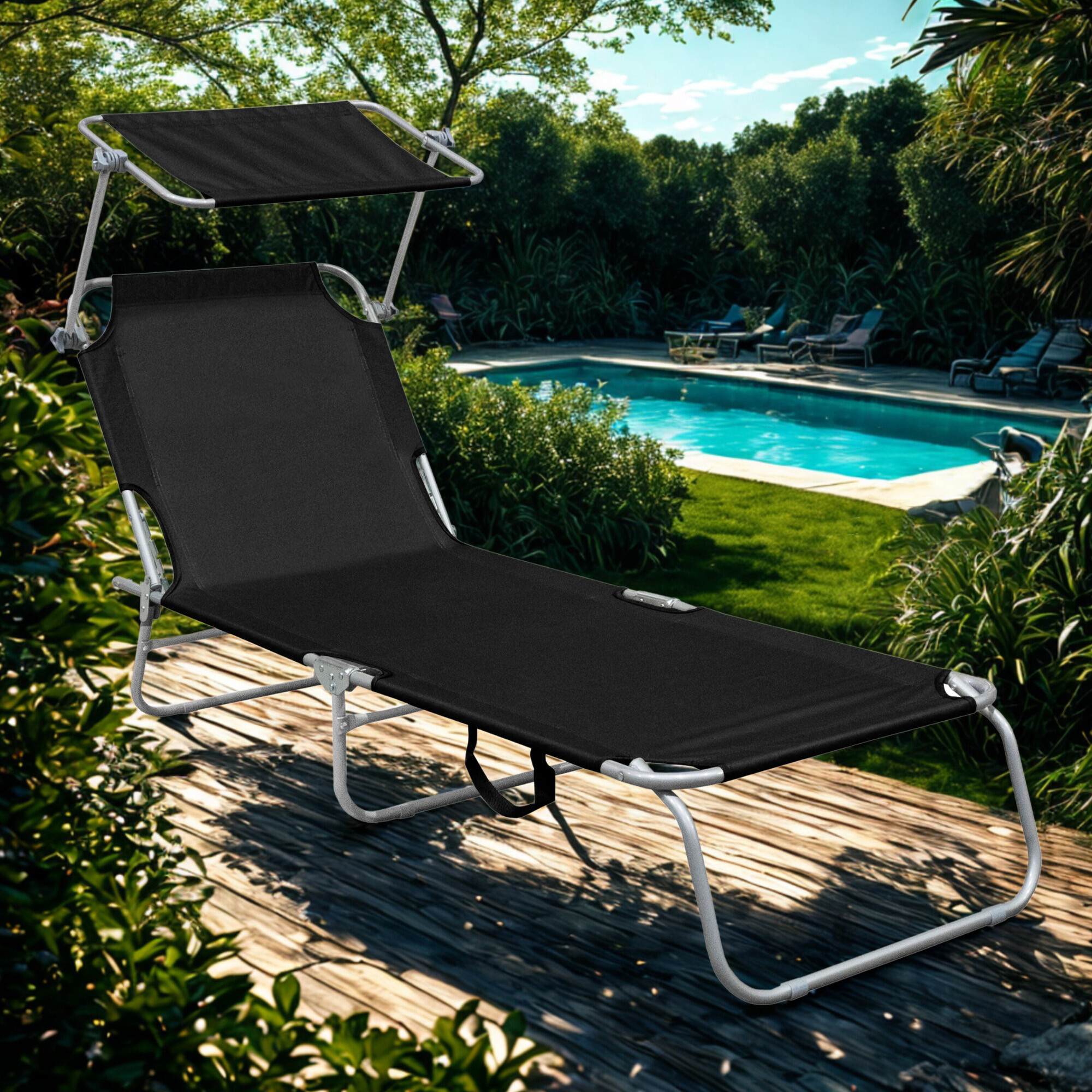 Klappbare Gartenliege mit verstärkter Stahlkonstruktion, in modernem Design, geeignet für Gärten, Camping oder Strände.