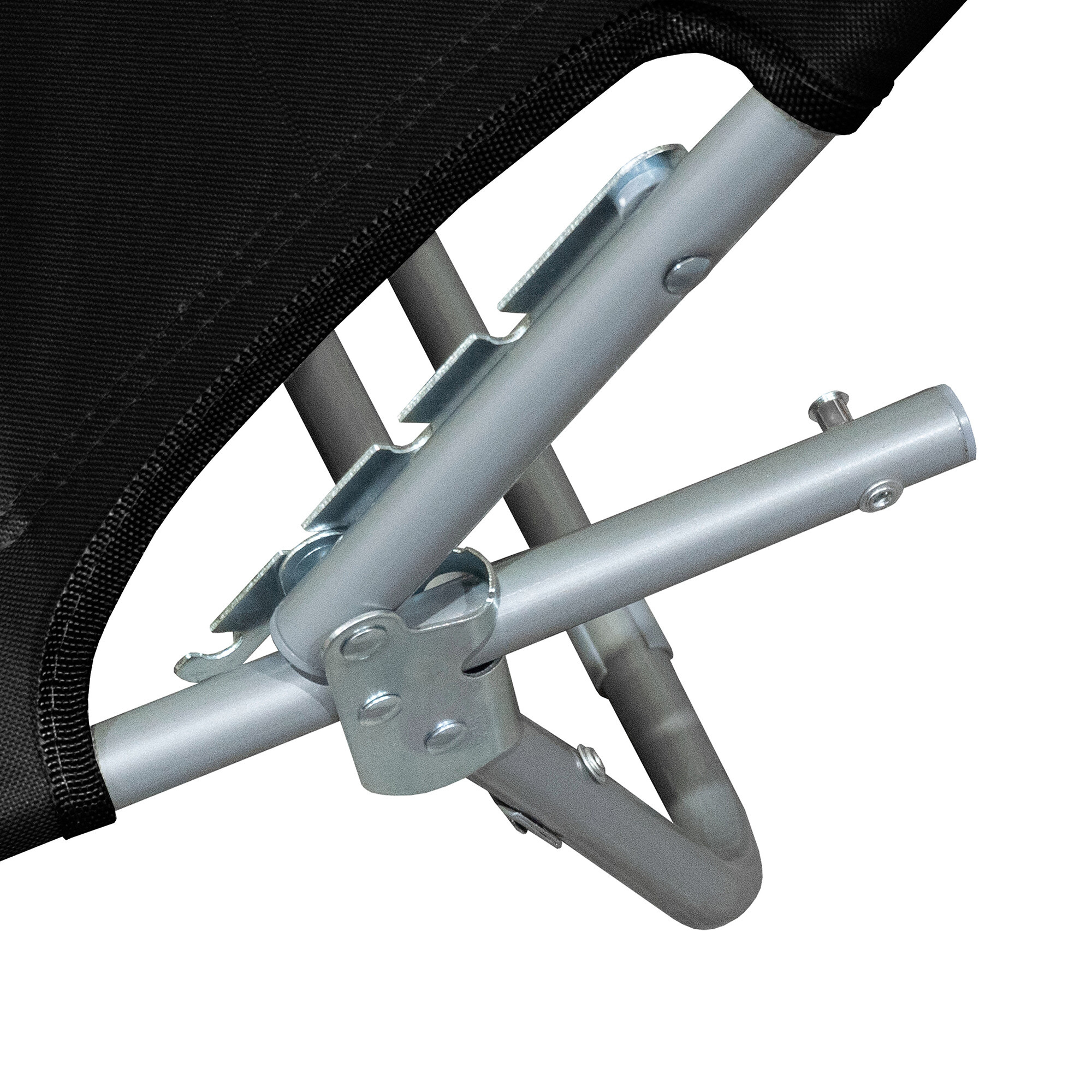 Die klappbare Konstruktion der Liege ermöglicht ein einfaches Auf- und Zusammenklappen. Stahlrohre mit einem Durchmesser von 18 mm gewährleisten hohe Widerstandsfähigkeit, Festigkeit, Stabilität und eine Tragfähigkeit von bis zu 120 kg.