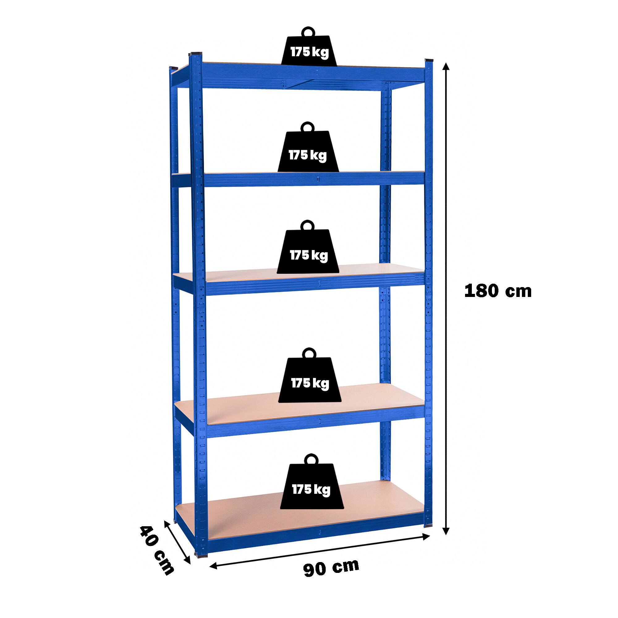 Rahmen aus verzinktem Stahl in blauer Farbe garantiert Stabilität und eine hohe Tragfähigkeit von ca. 875 kg (pro Regalboden ca. 175 kg).Ob in der Speisekammer oder in der Werkstatt - mit diesem praktischen Helfer lagern Sie nicht nur Lebensmittelvorräte und Getränke, sondern auch Werkzeuge!