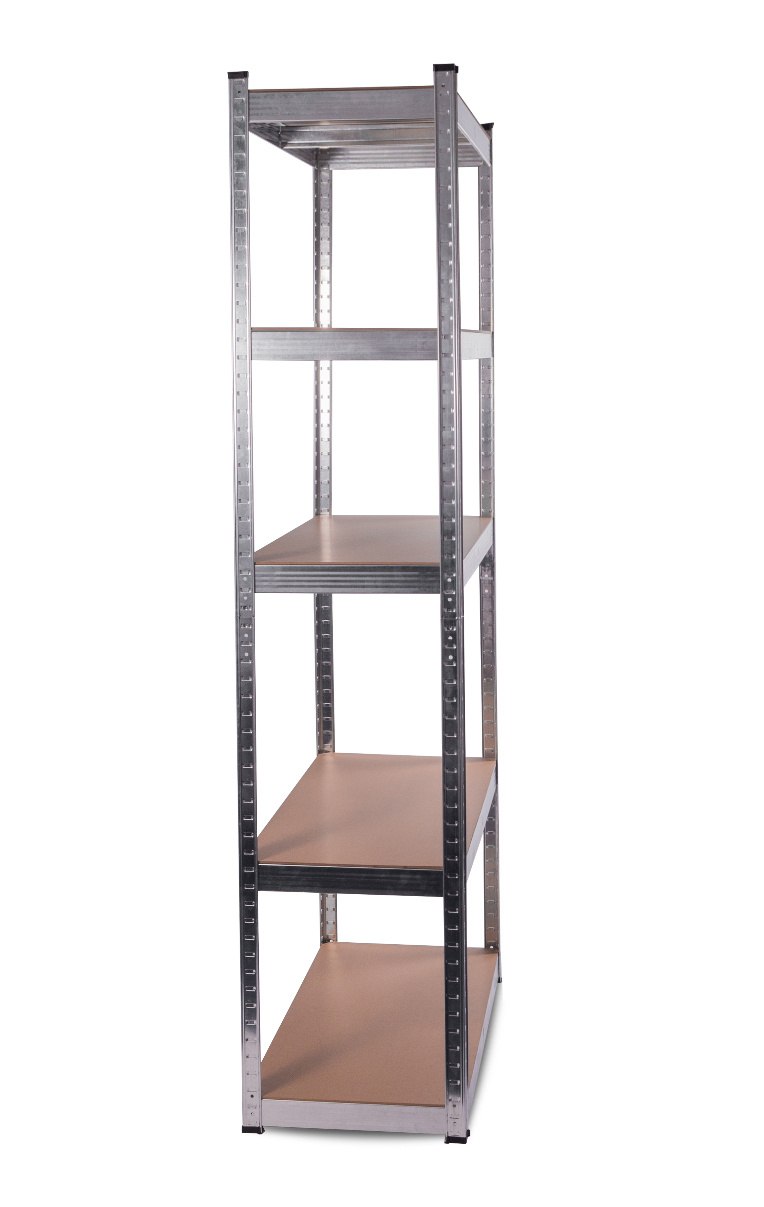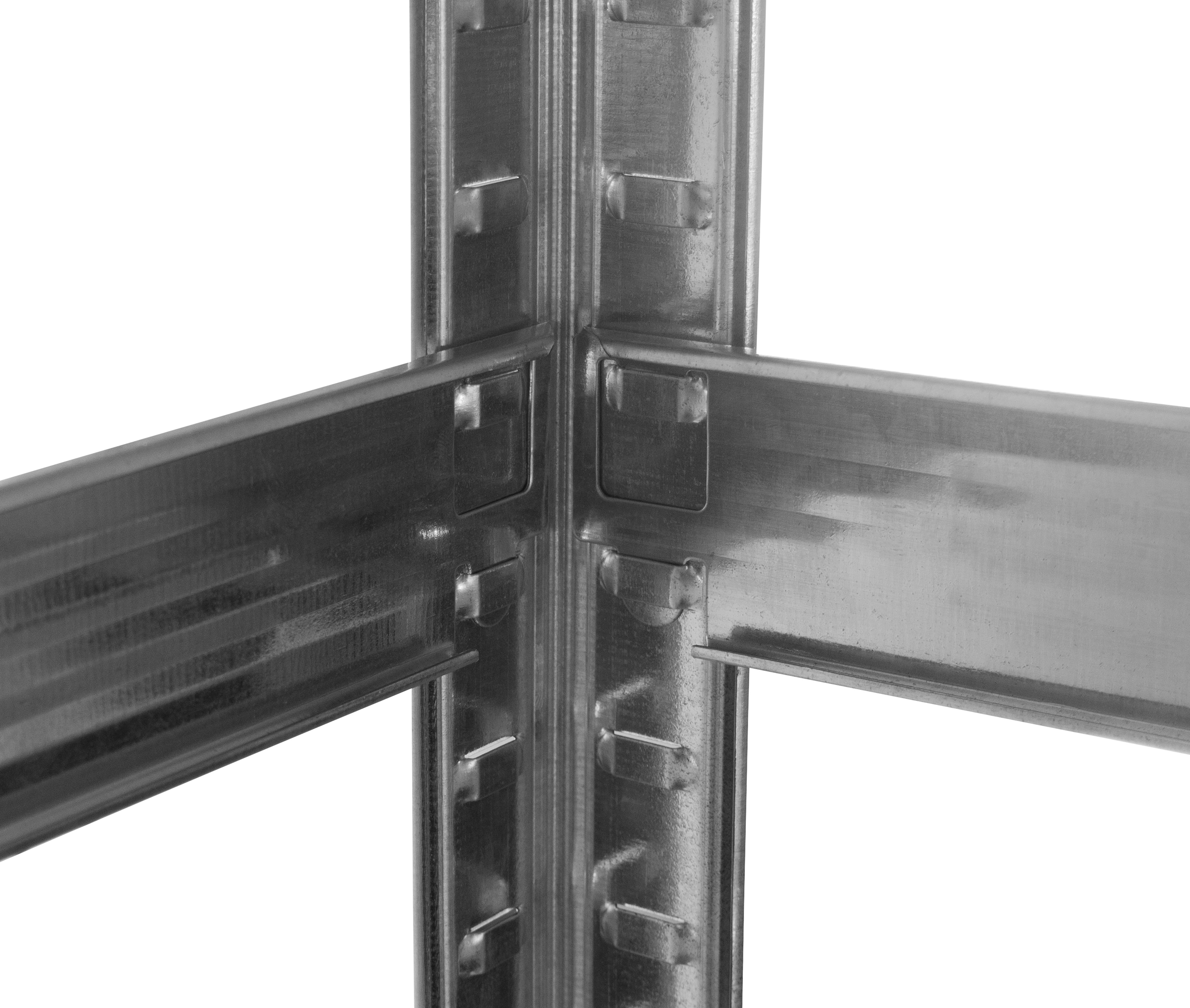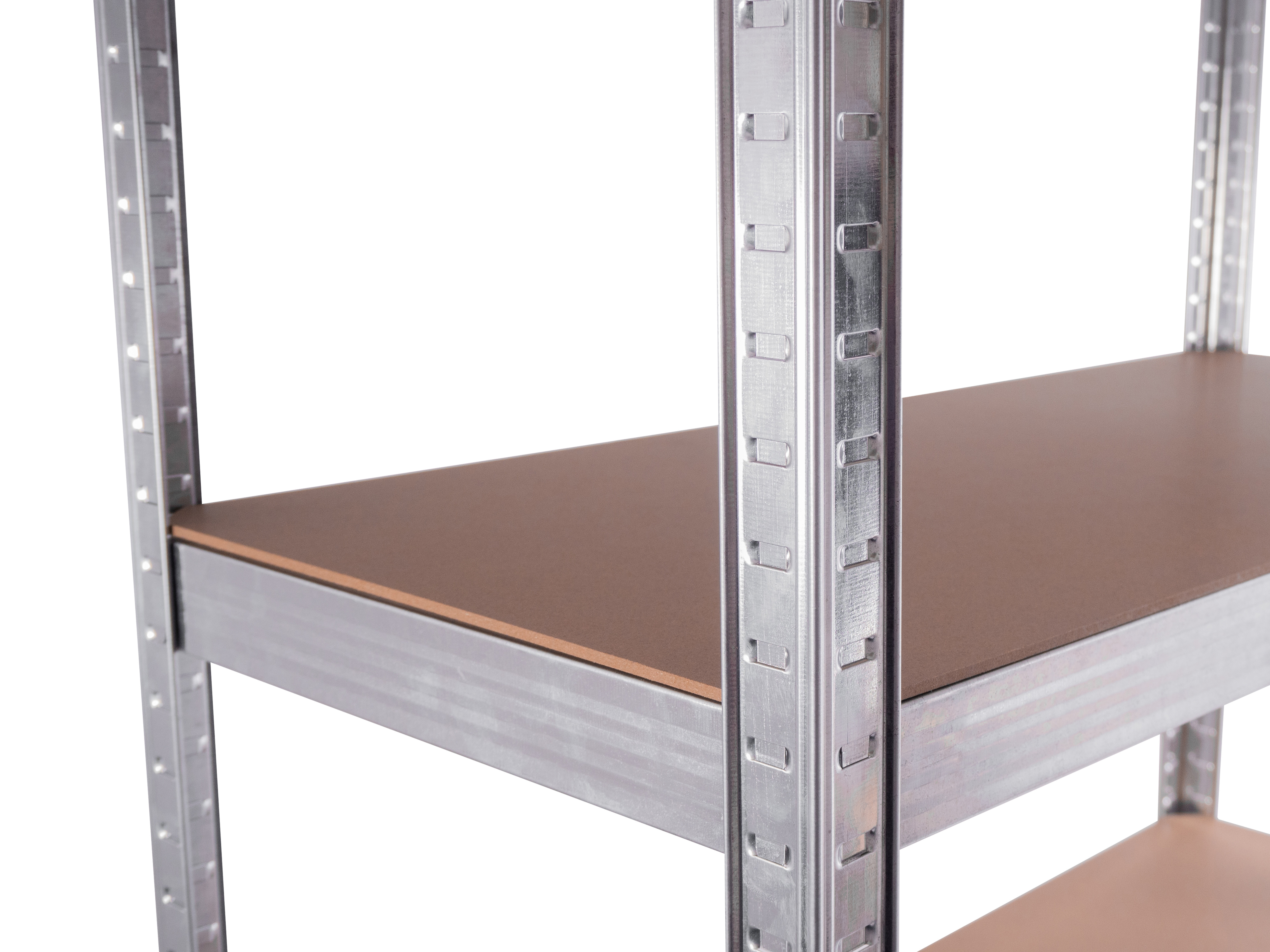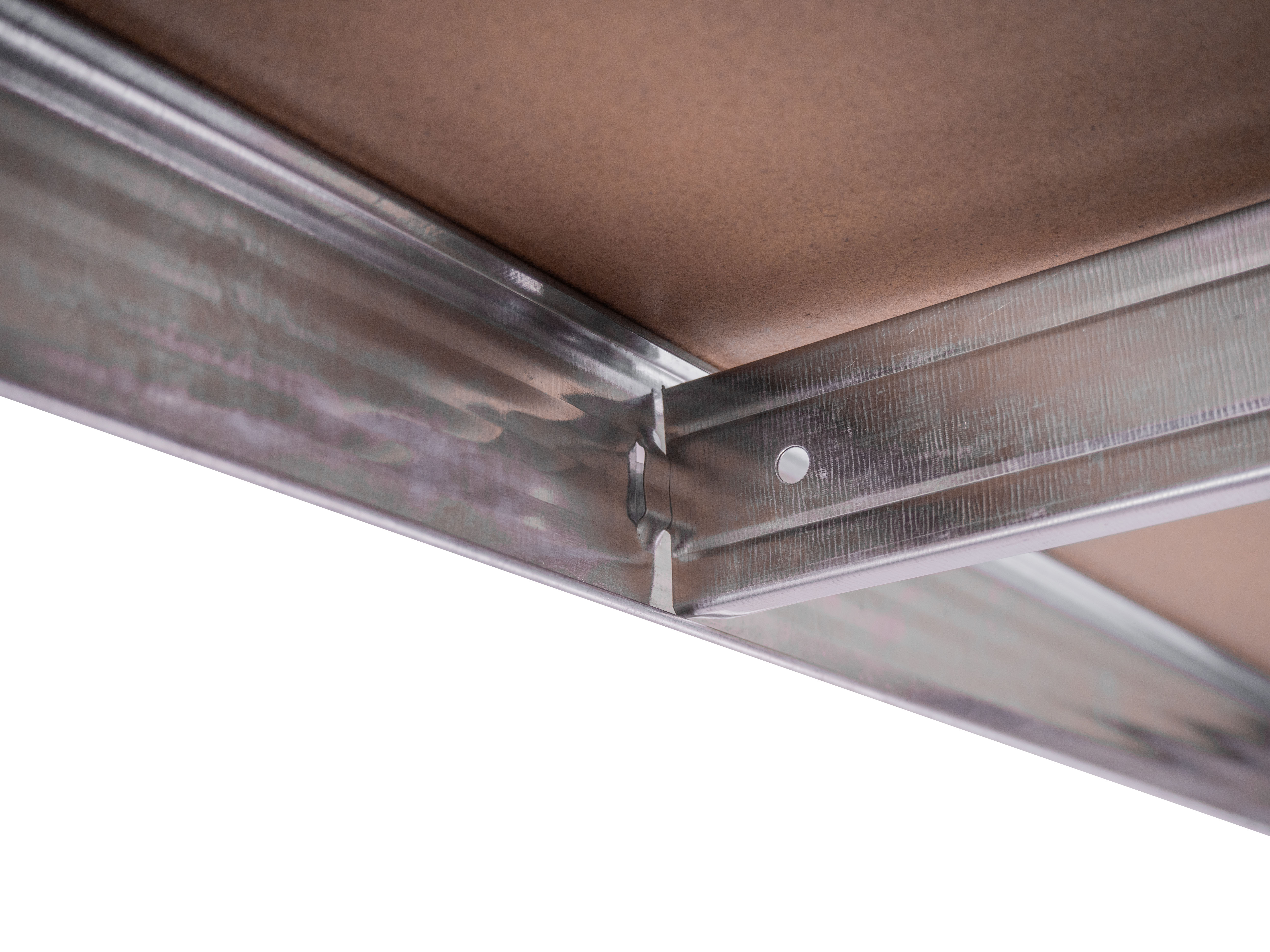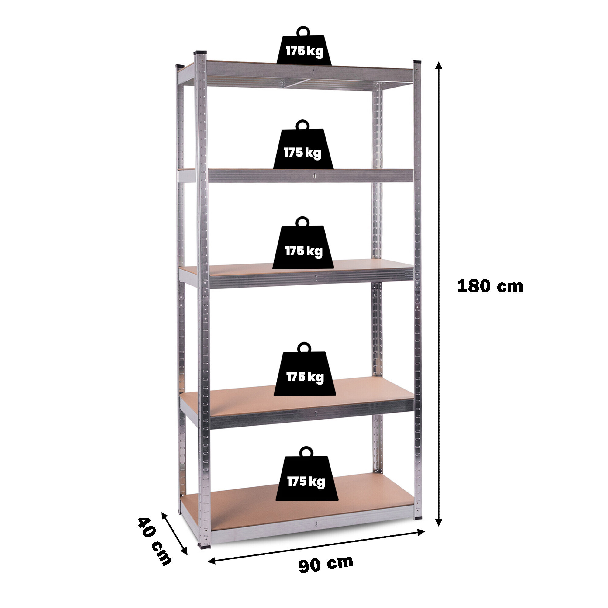 Der Rahmen aus verzinktem Stahl in Silberfarbe garantiert Stabilität und eine hohe Tragfähigkeit von ca. 875 kg (pro Regalboden ca. 175 kg).