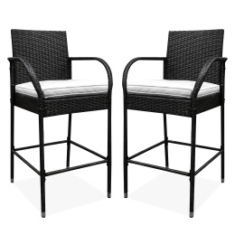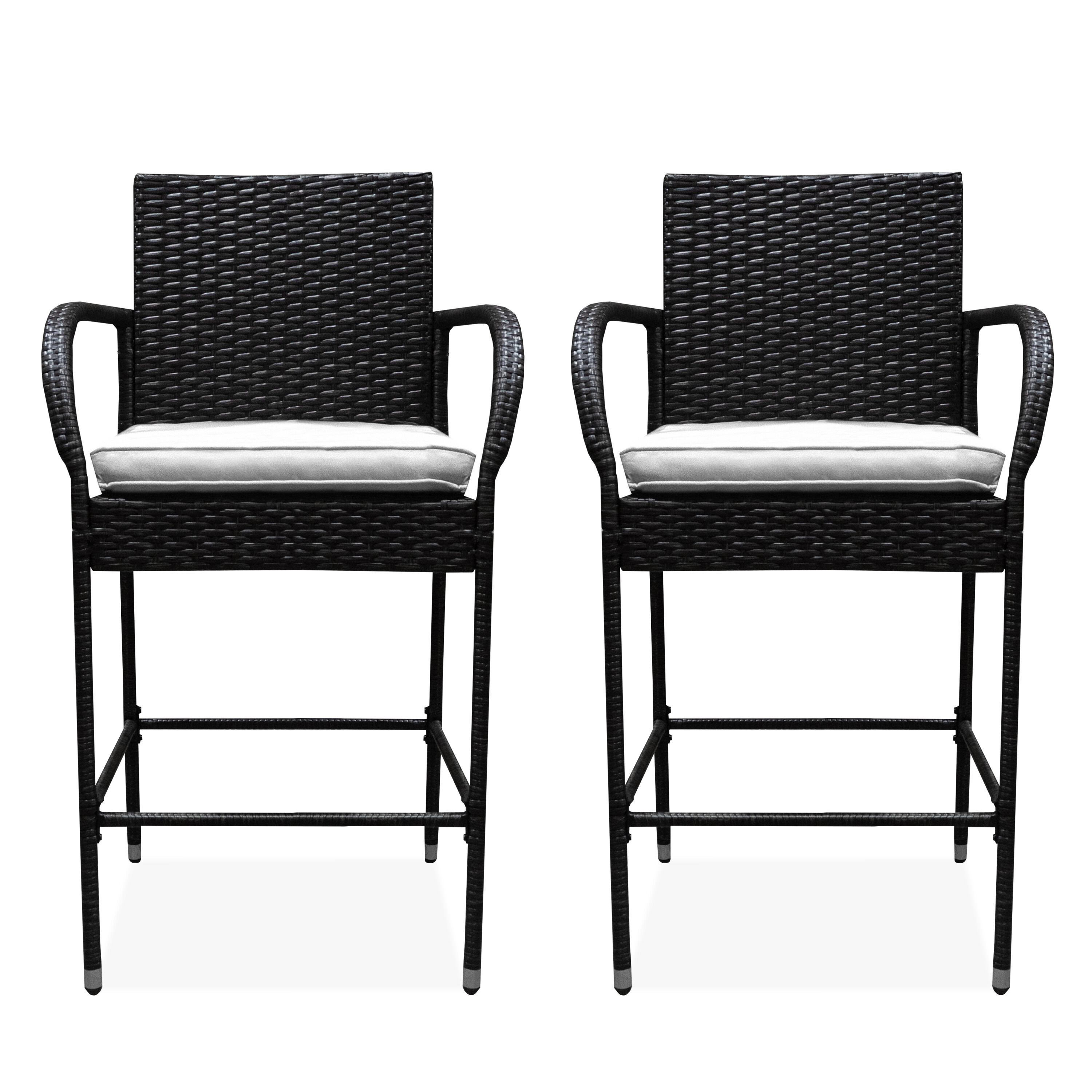 Dieses Set aus zwei Barhockern mit schlichtem, aber elegantem Design wird das Herzstück Ihres Wohnzimmers, Ihrer Außenküche oder eines anderen Außenbereichs sein.