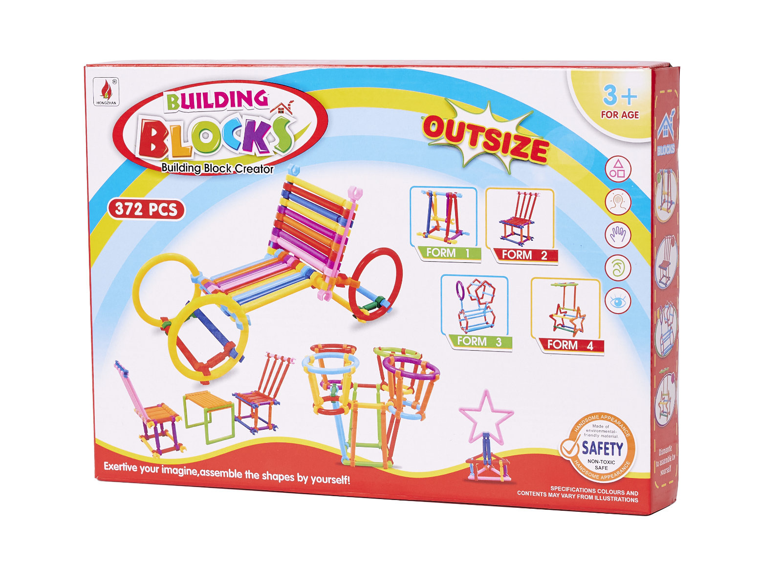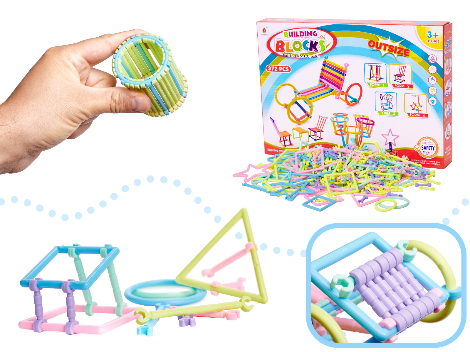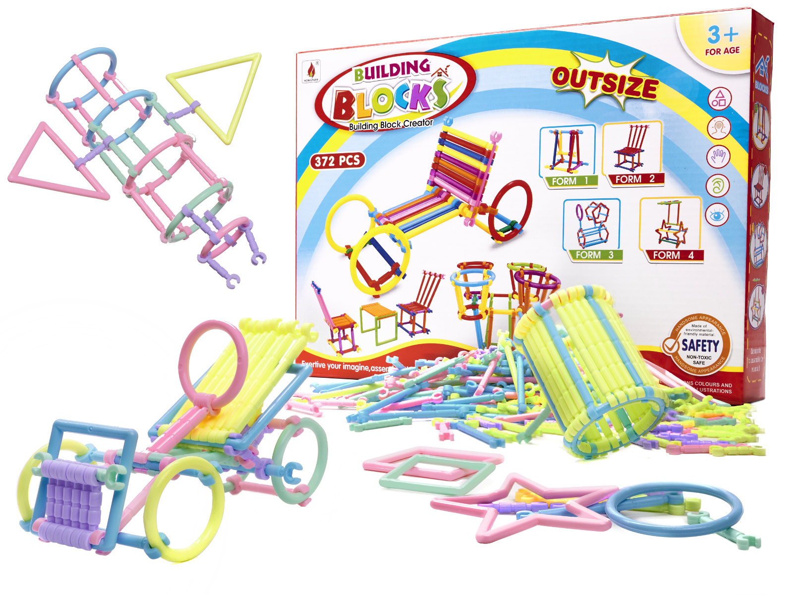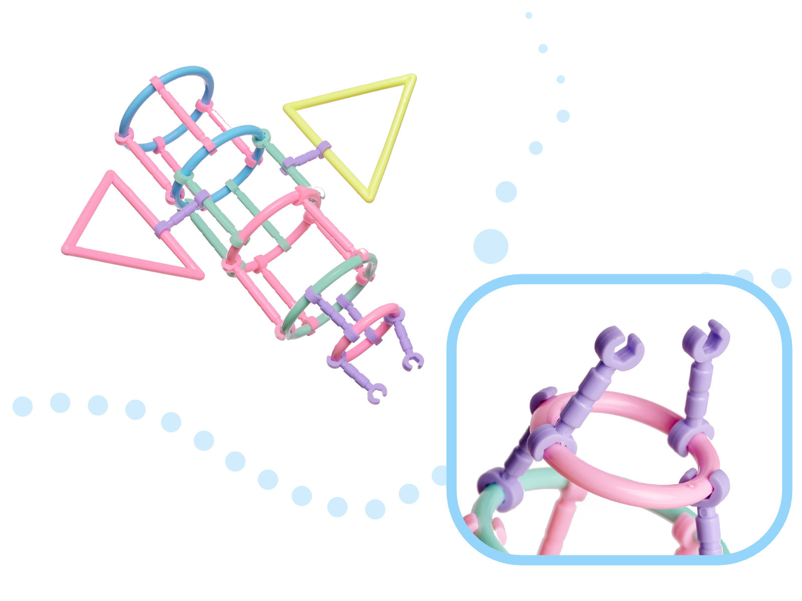 Kunststoffbausatz - Stäbe und andere Formen für den Bau von 3D-Modellen. Zunächst erstellen wir eine flache Form, dann fügen wir Verbindungselemente hinzu und erweitern das Gebäude in den Raum. Es bietet unzählige Möglichkeiten für kleine Bauherren.