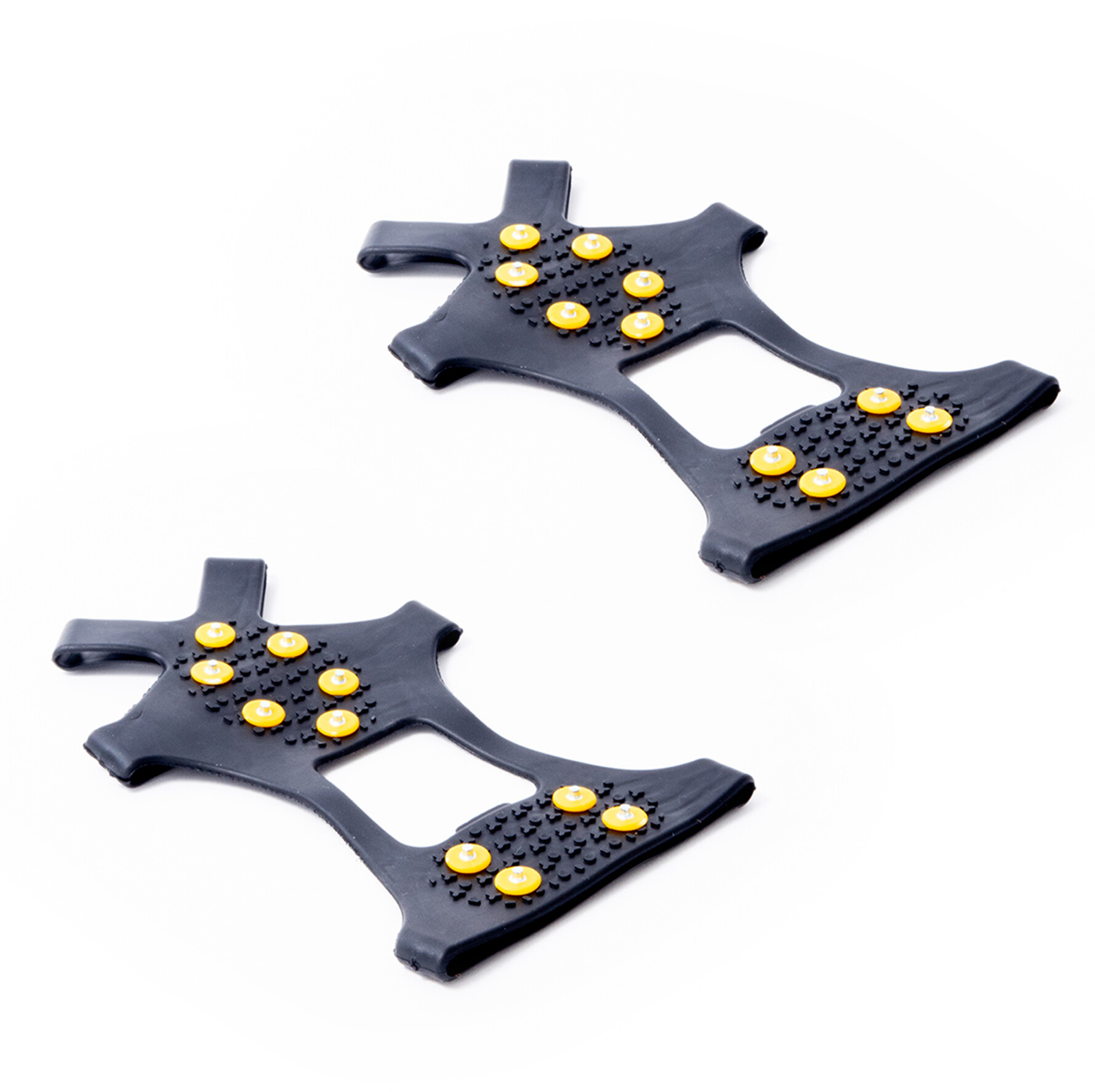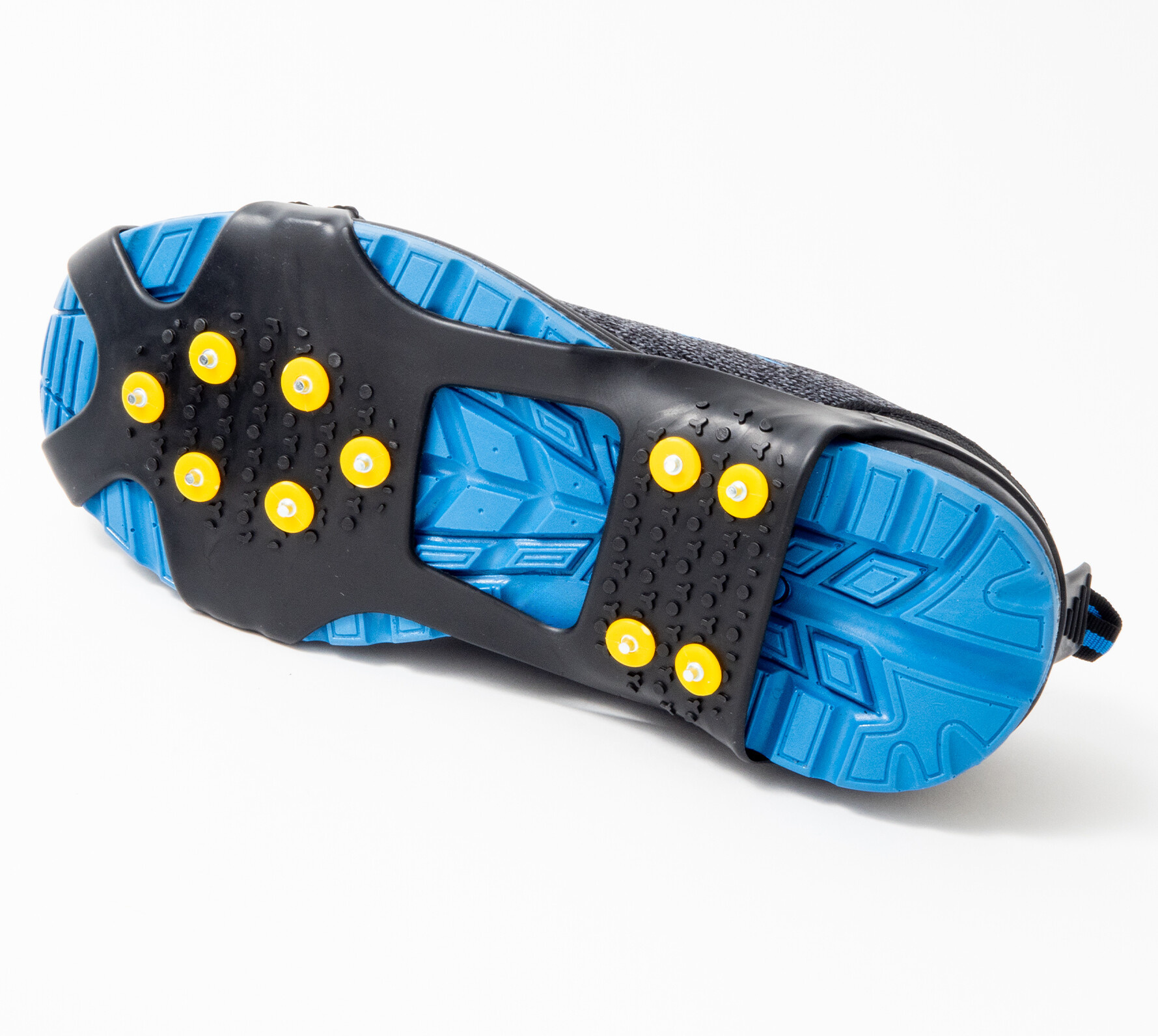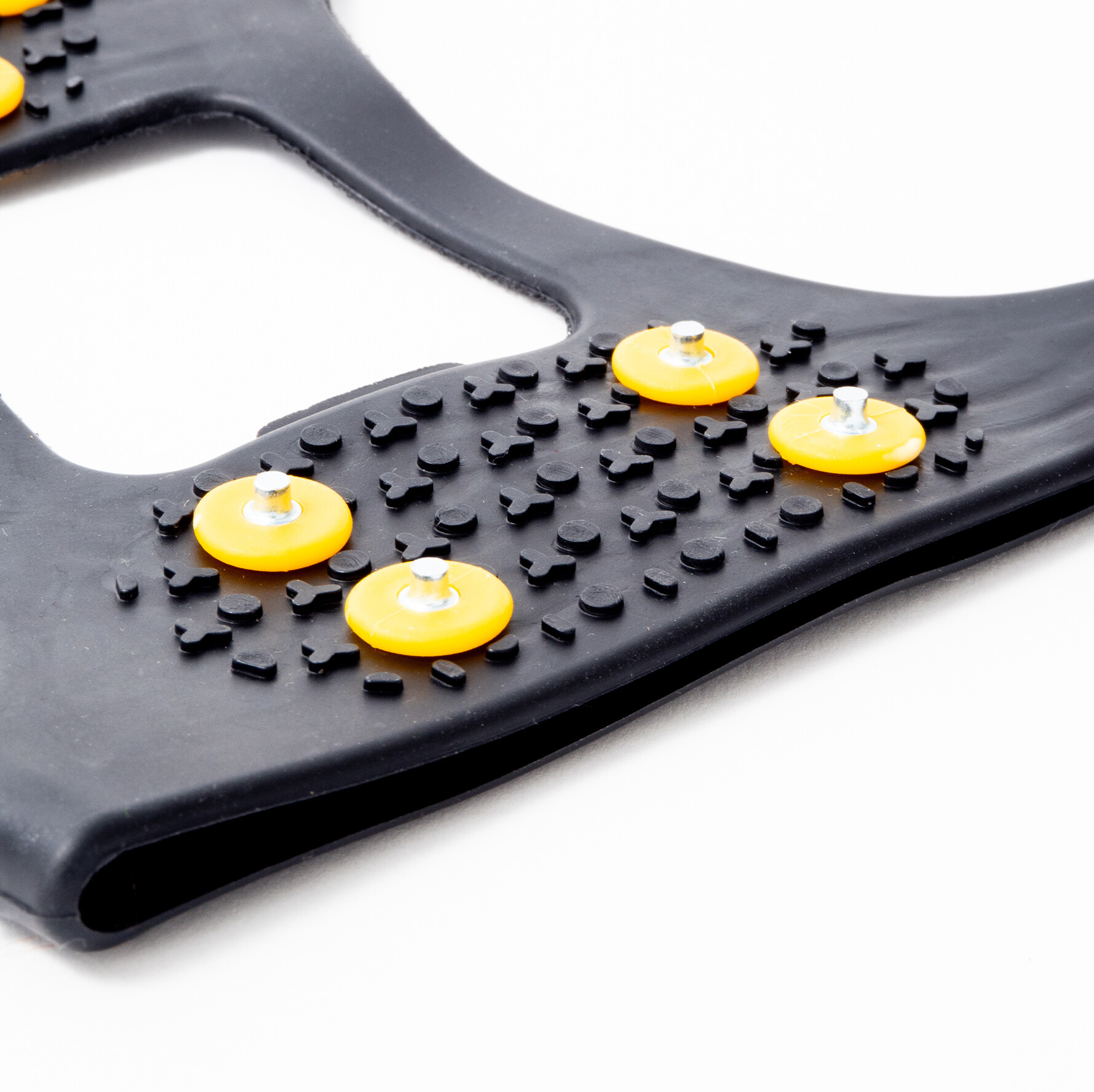 Gummiauflagen zwischen den Spitzen erleichtern auch das Gehen auf hartem Pflaster. Anwendbar auf jedes Schuhwerk, einschließlich Stiefel mit Absätzen.