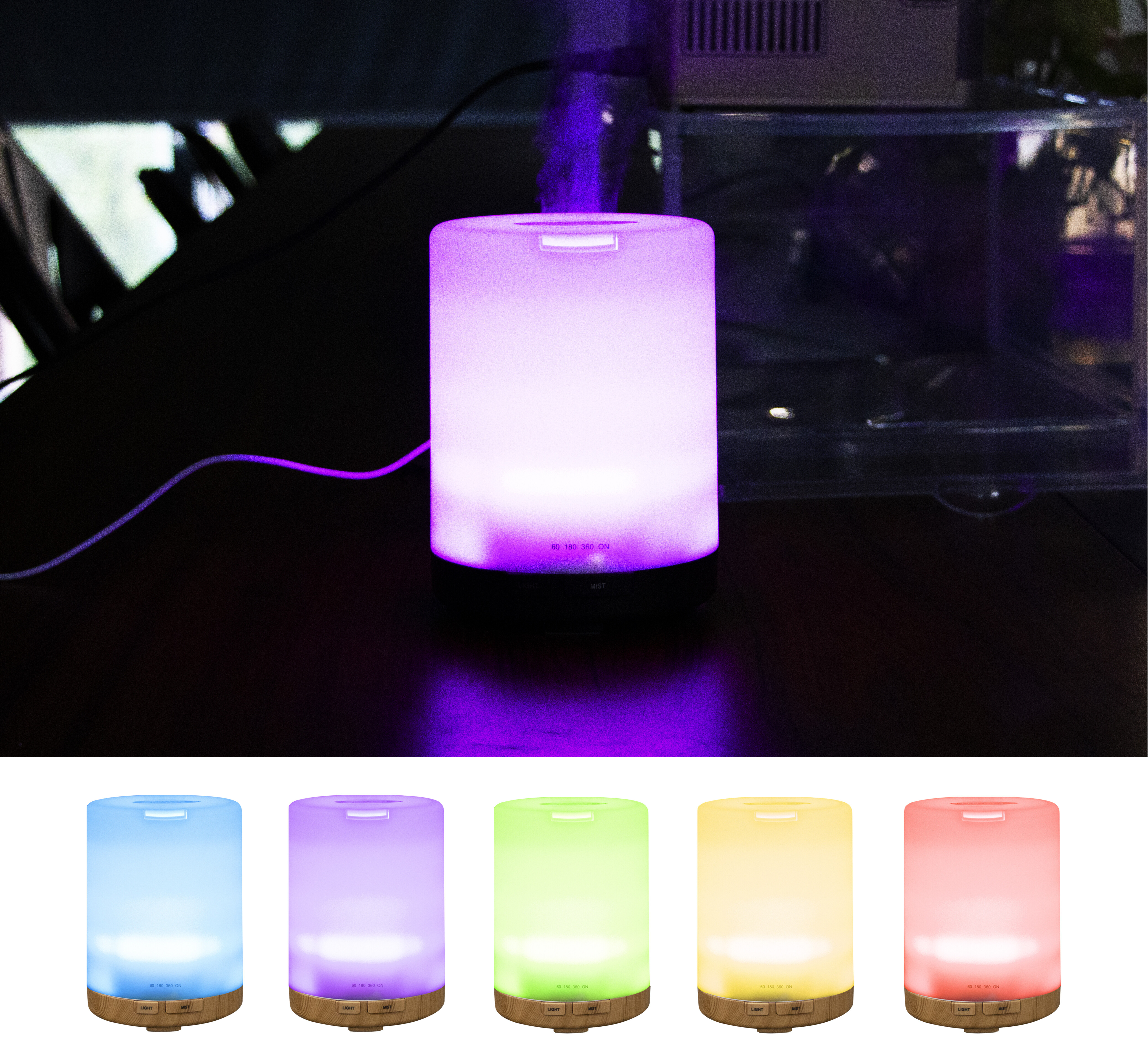 Der Diffusor ist mit einer farbigen LED-Beleuchtung ausgestattet, die bis zu sieben verschiedene Farben bietet.