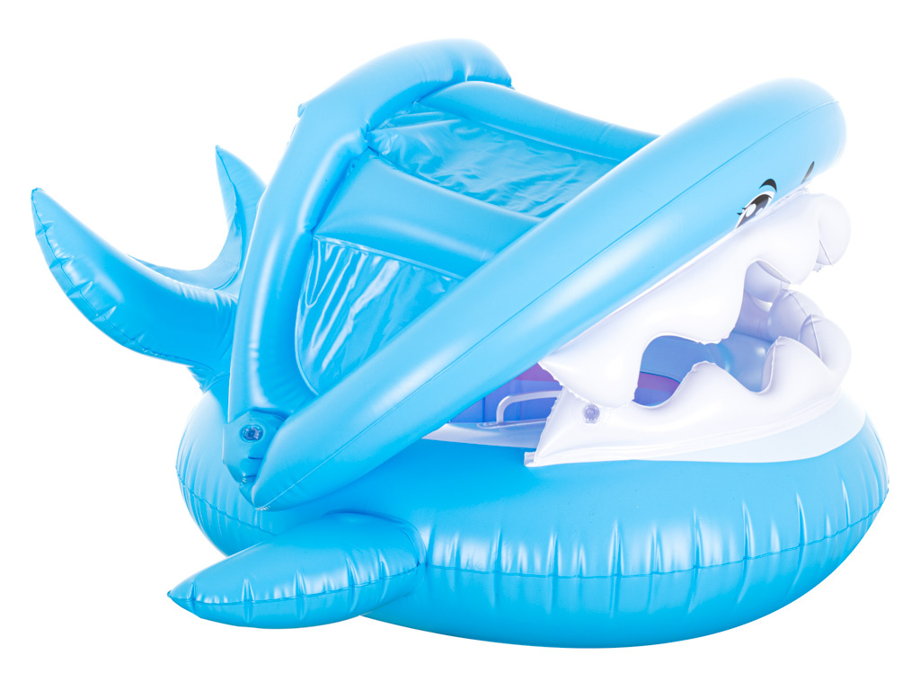 Nicht so furchterregender Hai! Hallo, Seemann! Ein nautisches Abenteuer wartet auf Ihr Kind. Der freundliche Hai ist, obwohl er große Zähne hat, völlig harmlos. nimmt Ihr Kind mit auf eine fantastische Reise in die Tiefen des Meeres. Keine Sorge, dein Baby ist im Maul des Hais völlig sicher, der Hai ernährt sich nur von Spaß. Mit diesem magischen aufblasbaren Wesen wird jeder Ausflug ins Wasser zu einem fanatischen und unvergesslichen Abenteuer. Bei Spaß geht es um sicheren Spaß. Der Ponton ist mit einem praktischen abnehmbaren Verdeck ausgestattet, das den kleinen Entdecker vor den schädlichen Sonnenstrahlen schützt. Der bequeme Sitz mit Beinöffnungen sorgt für Komfort und Sicherheit bei der Benutzung. Darüber hinaus ist die Matratze mit komfortablen Griffen ausgestattet Ein freundlicher Hai beaufsichtigt den guten und sicheren Spaß. Die originelle Form zieht die Aufmerksamkeit des Kindes auf sich und regt zum Schwimmen im Meer an. Der Hai ist die perfekte Unterstützung für das erste Sommerschwimmen im Pool, Fluss oder See. So wird Ihr Baby an das Wasser herangeführt und zum Schwimmen angeregt. Er ist aus strapazierfähigem Kunststoff gefertigt und wird so manches Seeabenteuer überstehen. Die perfekte Geschenkidee für einen kleinen Entdecker. maximales Gewicht des Kindes: 23 kg
