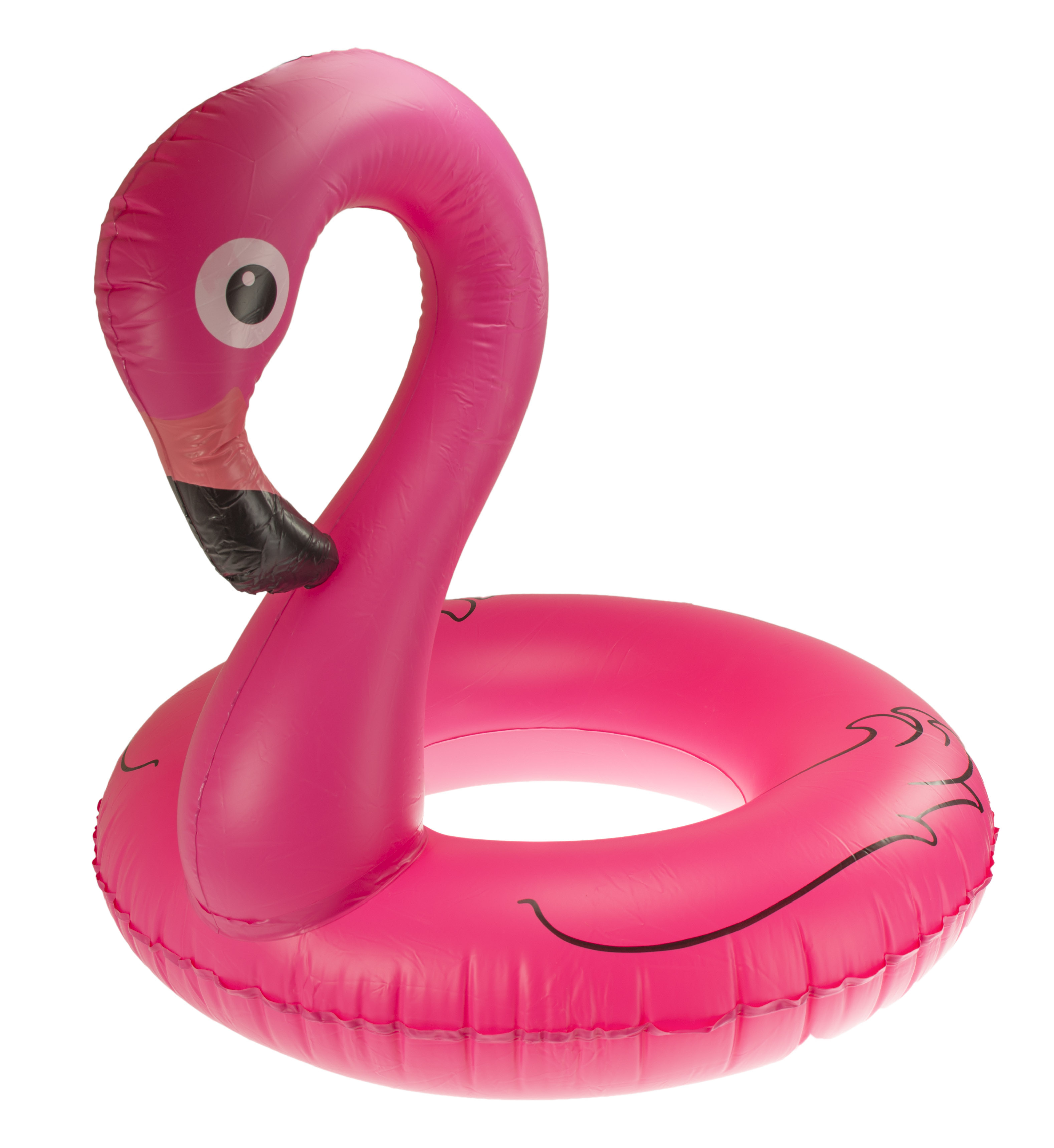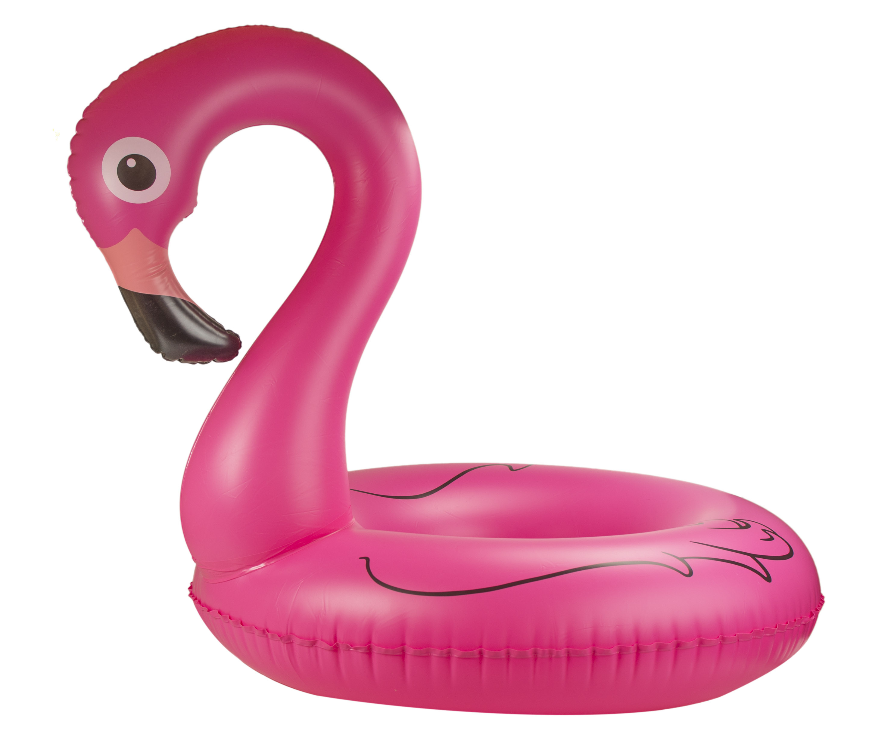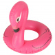 Buntes aufblasbares Fahrrad geformt flamingo, hergestellt aus hochwertigem PVC-Kunststoff, der eine lange Lebensdauer garantiert.