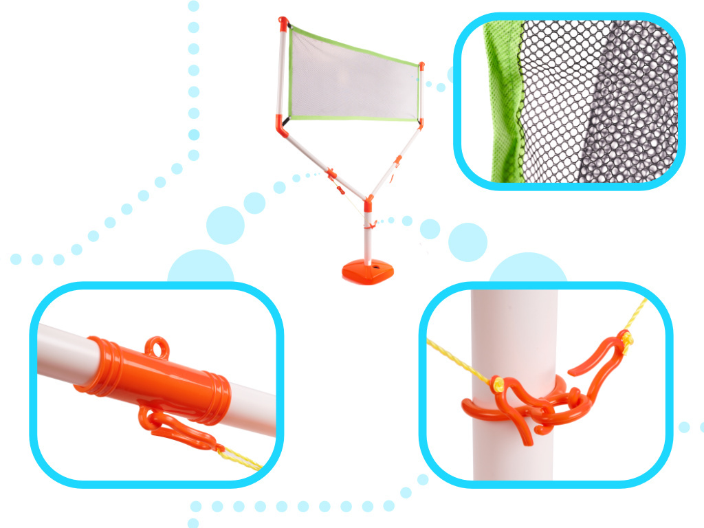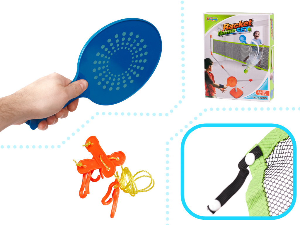 ist Ihr Kind ständig in Bewegung und Sie sind immer auf der Suche nach neuen und interessanten Aktivitäten für es?Das Set ermöglicht aktives Spielen in zwei verschiedenen Sportarten! Wir können nicht nur Badminton, sondern auch Tennis spielen. Von Langeweile kann keine Rede sein, wenn Ihr Kind sich aussuchen kann, welchen Sport es heute spielen möchte.