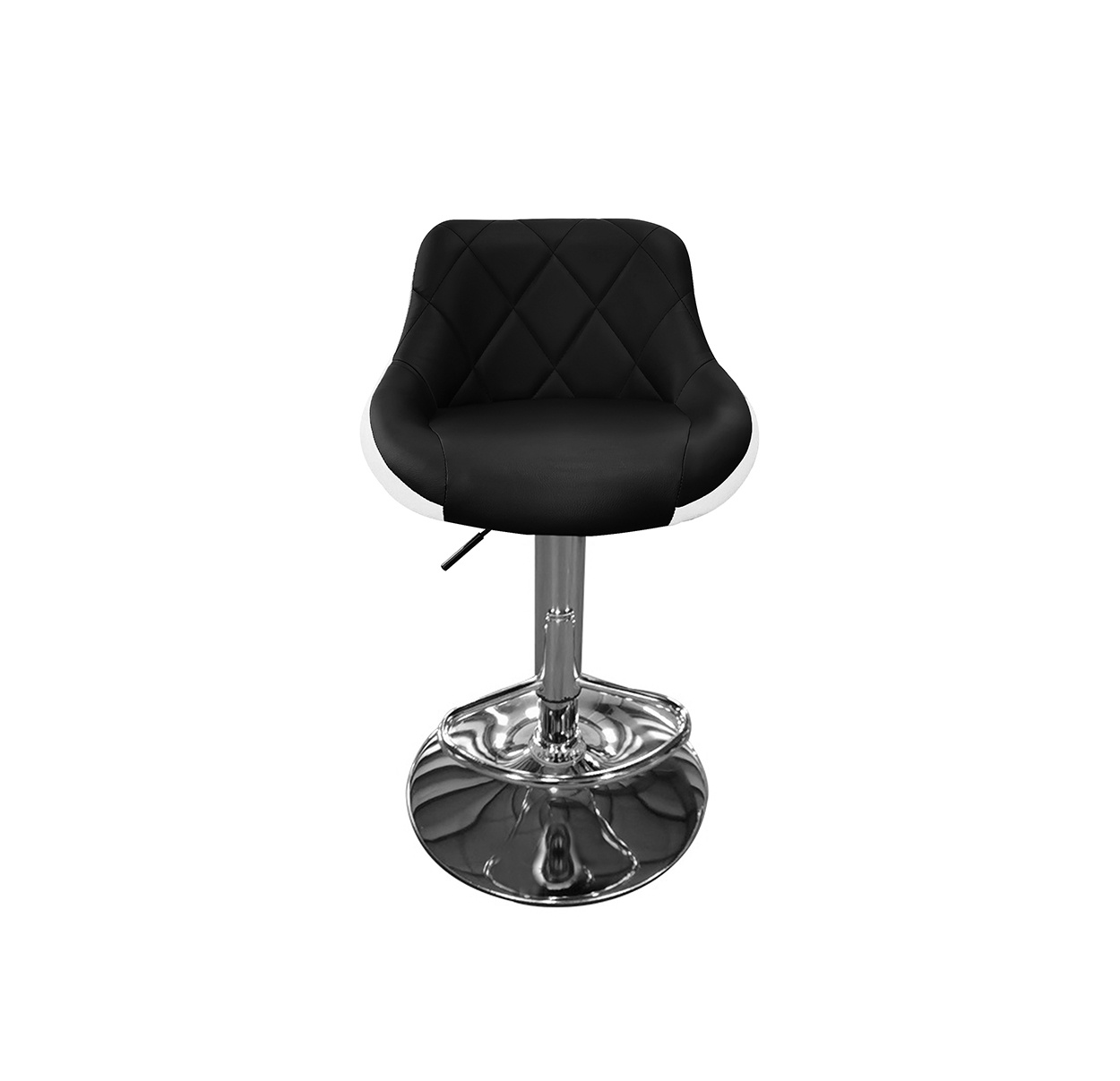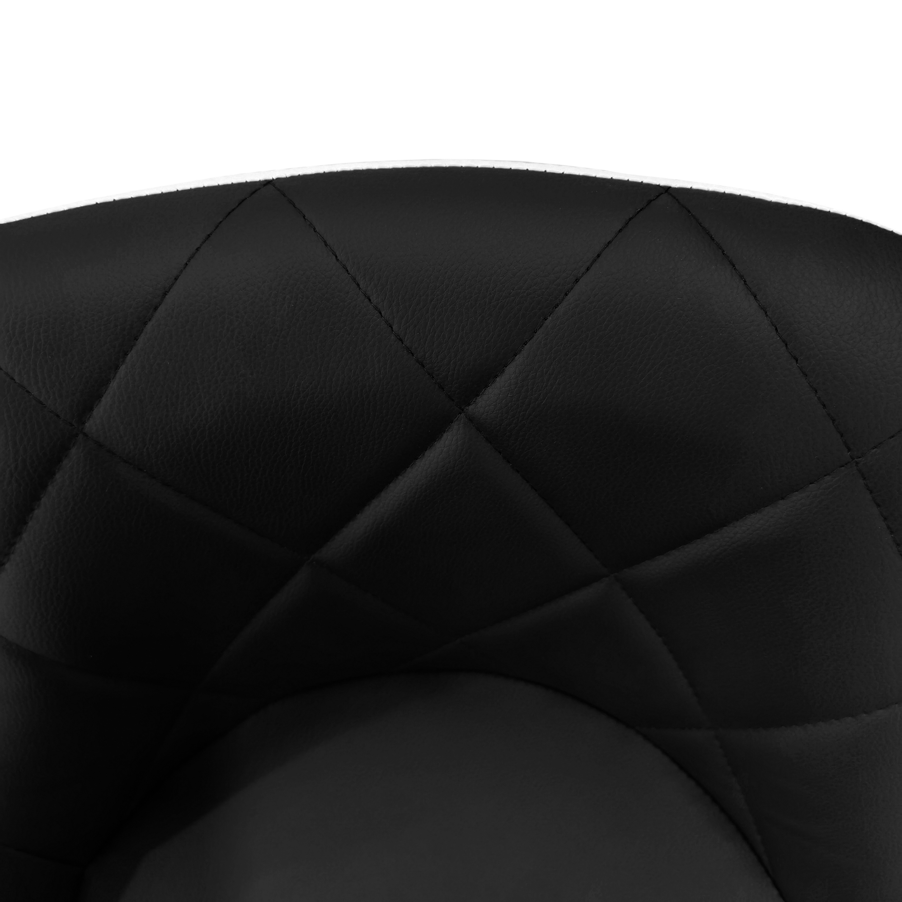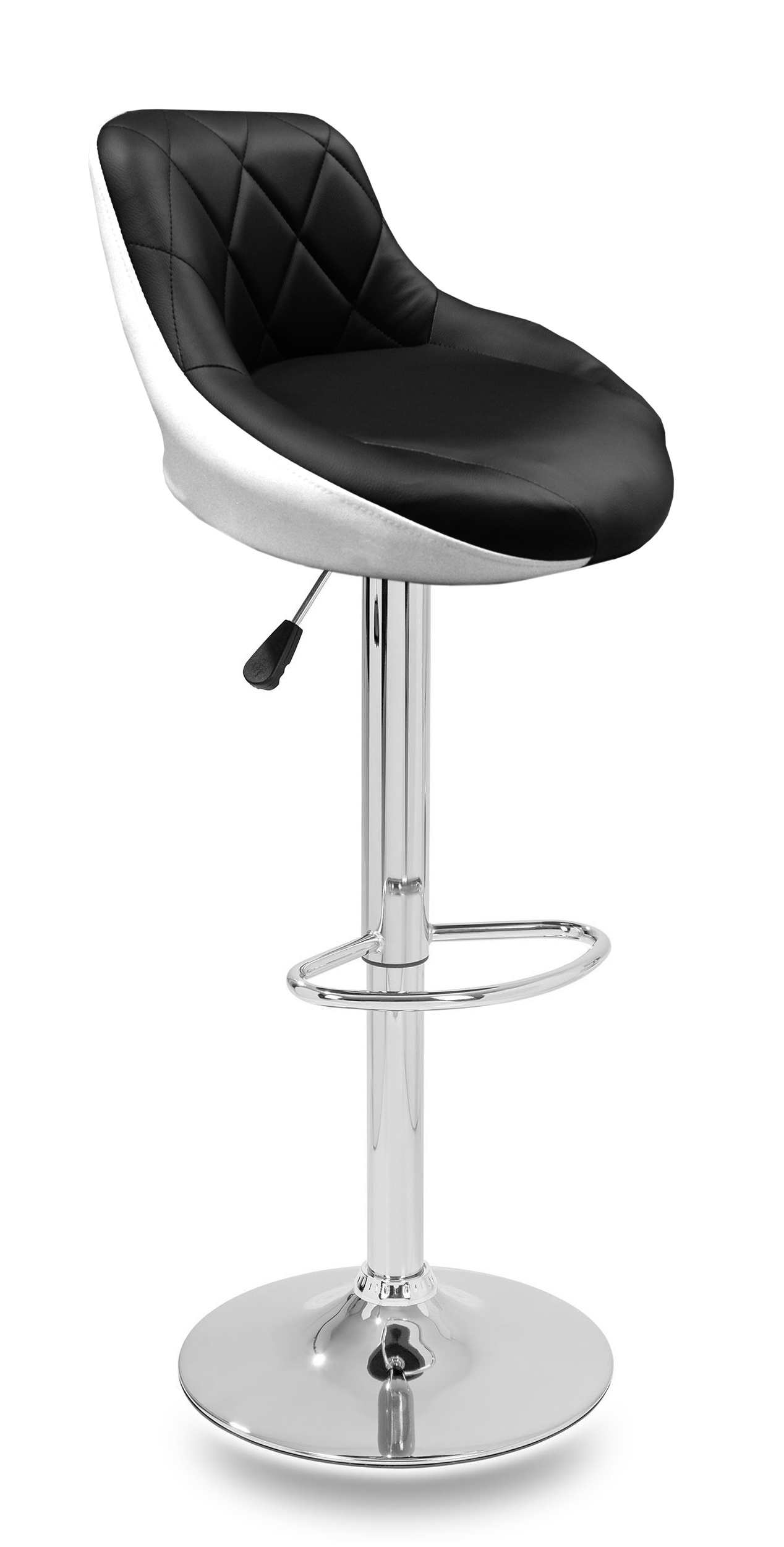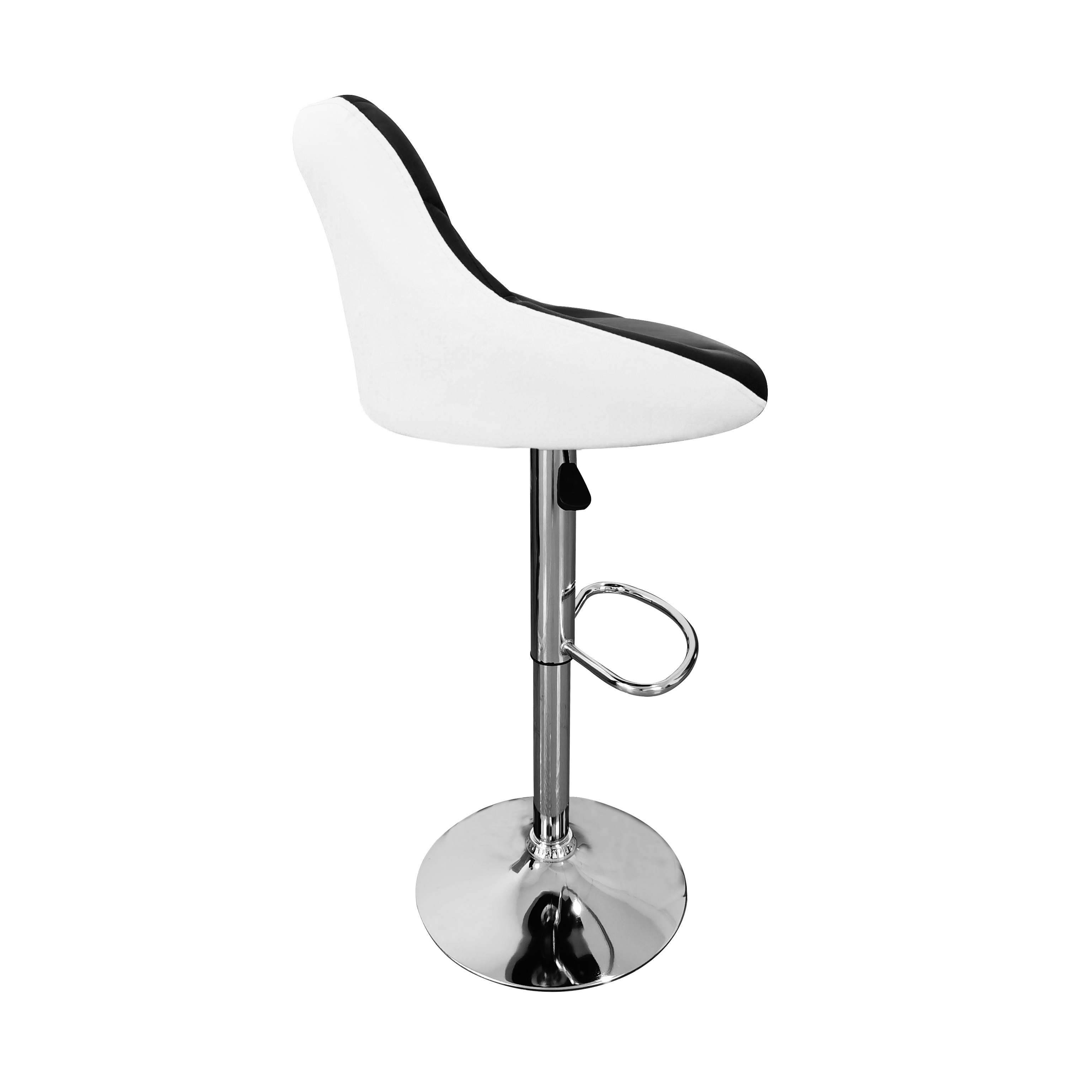 Der Sitz des Stuhls ist mit Kunstleder bezogen und leicht zu reinigen.Der Stuhl hat einen praktischen Fußhocker aus verchromten Metall.Die runde Basis und das Mittelbein sind in glänzendem Chrom.