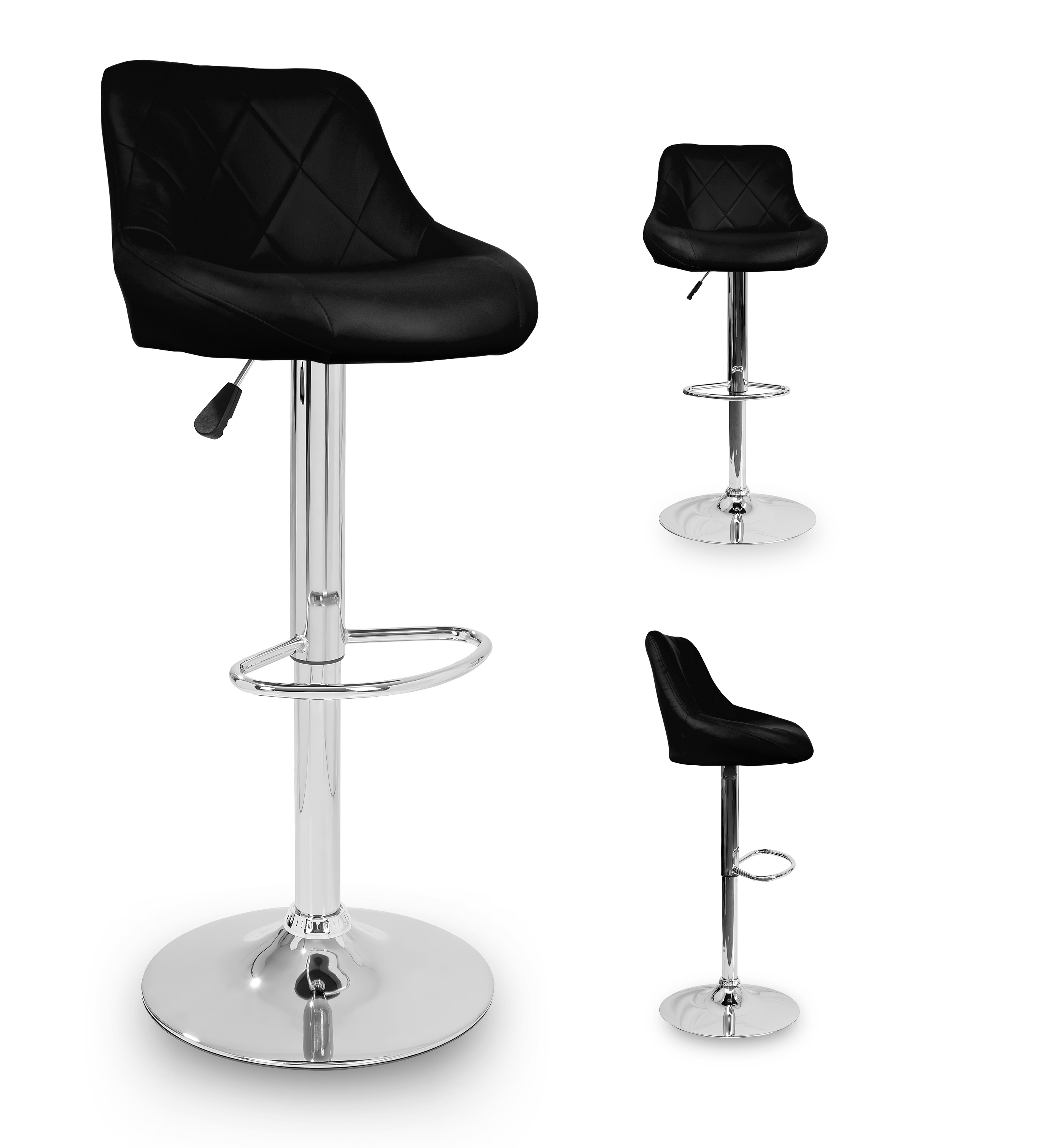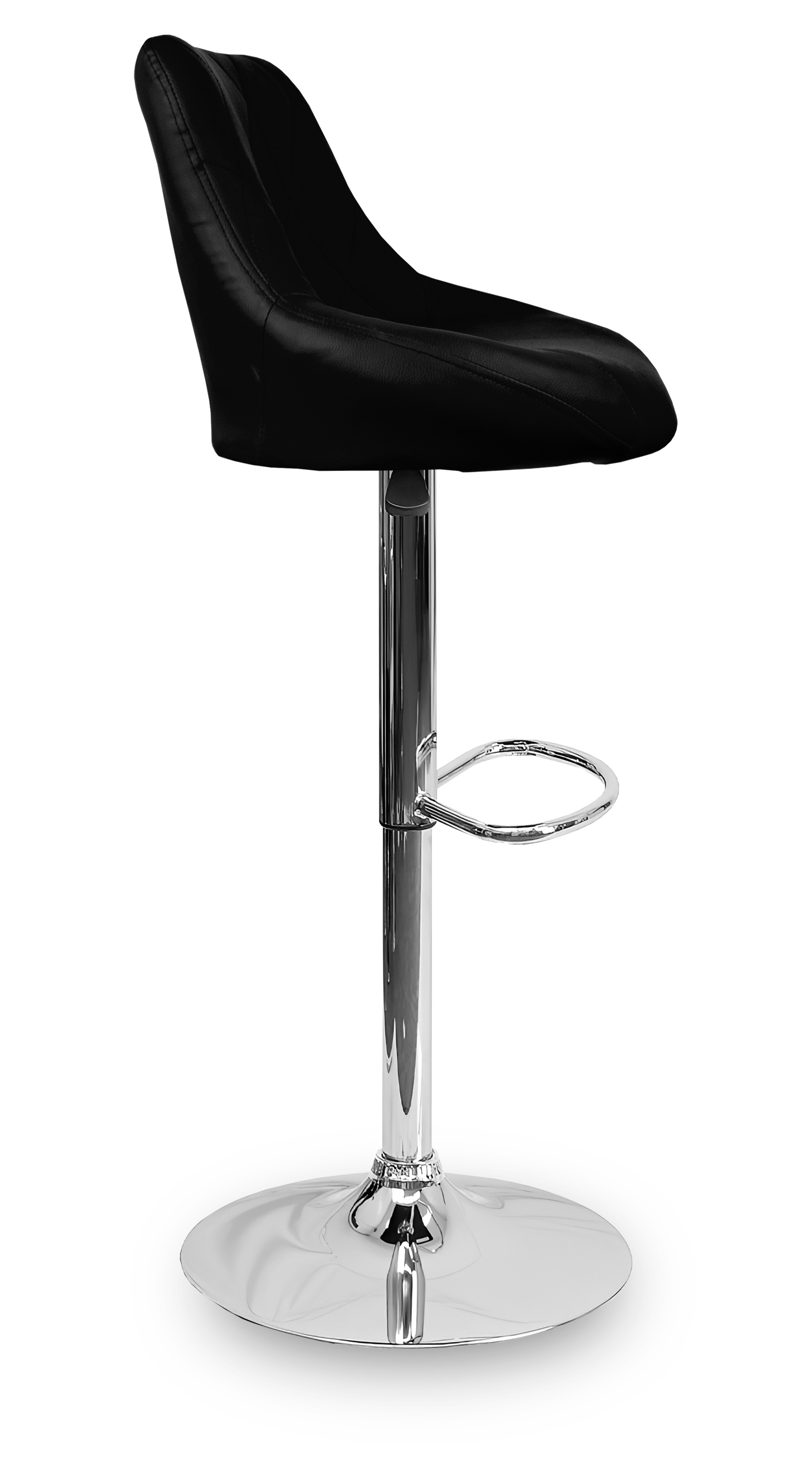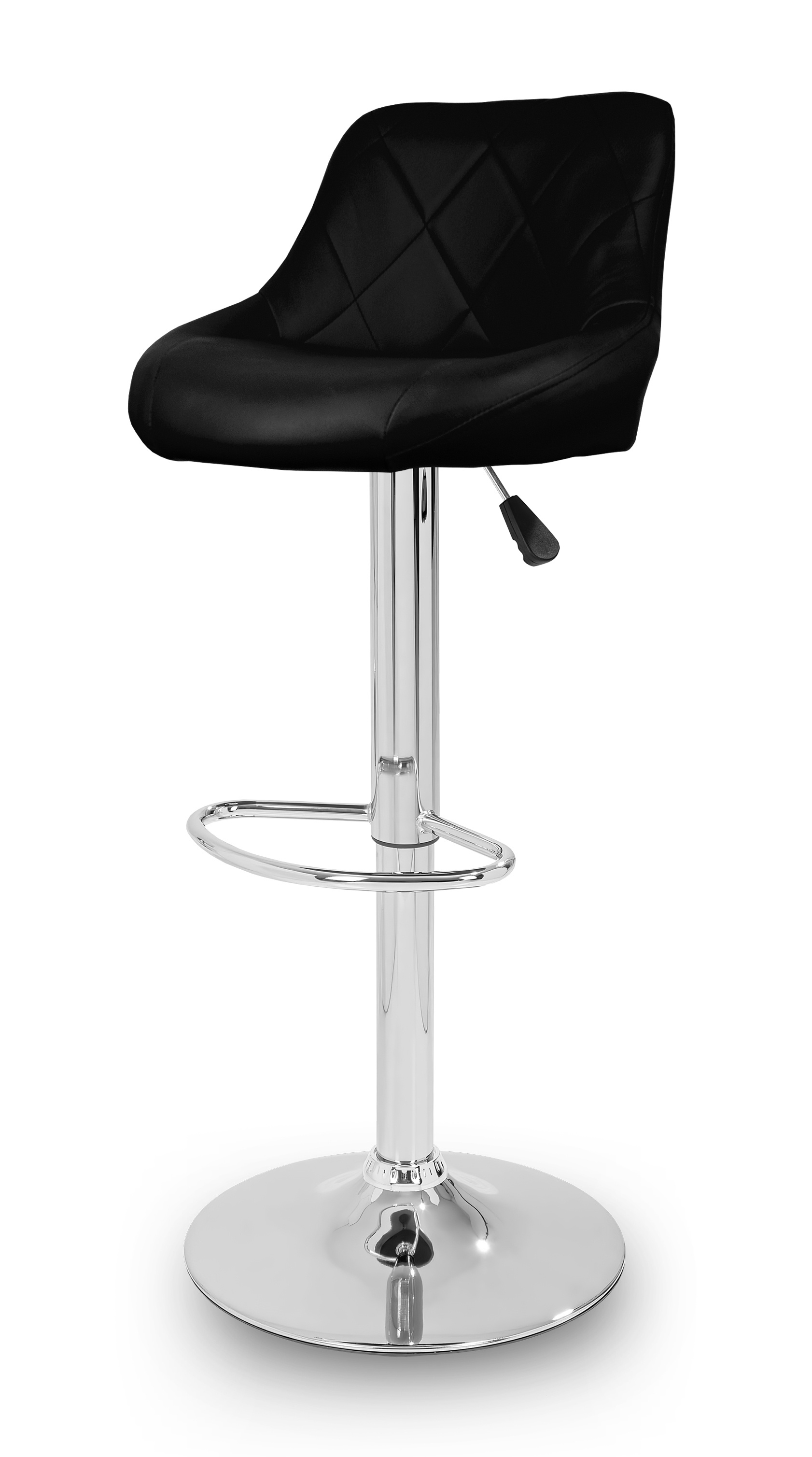 Der Sitz des Stuhls ist mit Kunstleder bezogen und leicht zu reinigen.Der Stuhl hat einen praktischen Fußhocker aus verchromten Metall.Die runde Basis und das Mittelbein sind in glänzendem Chrom.