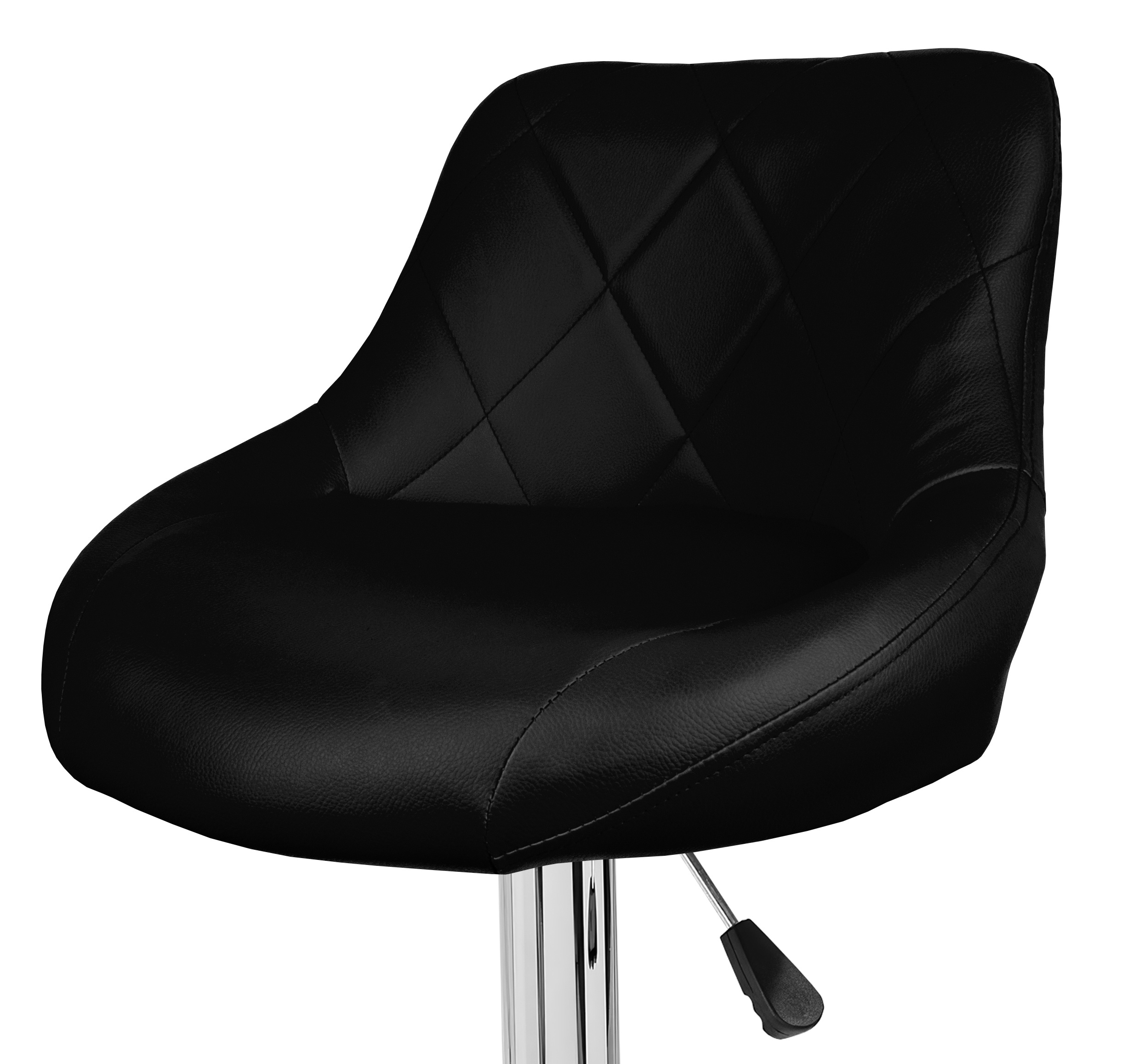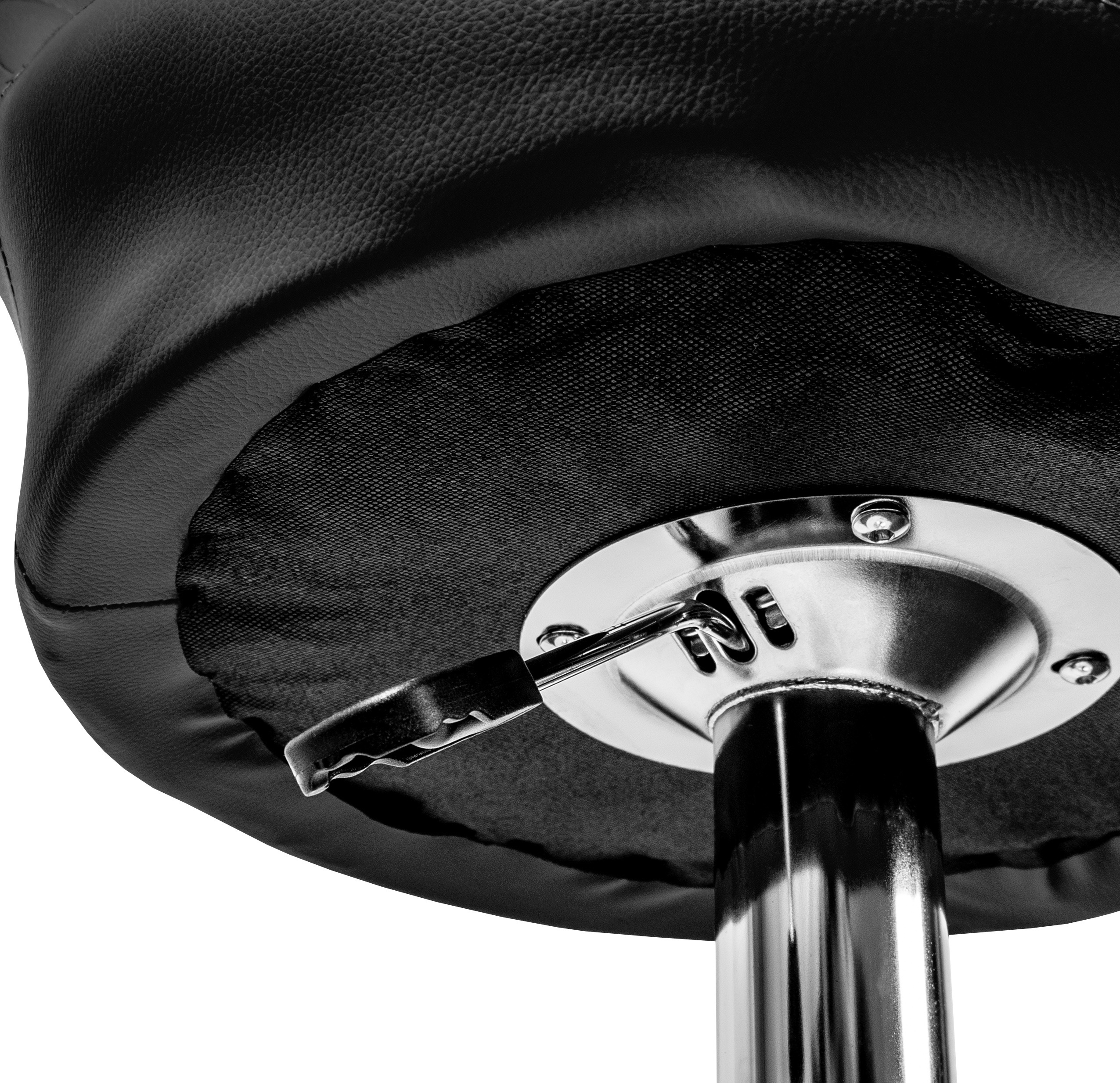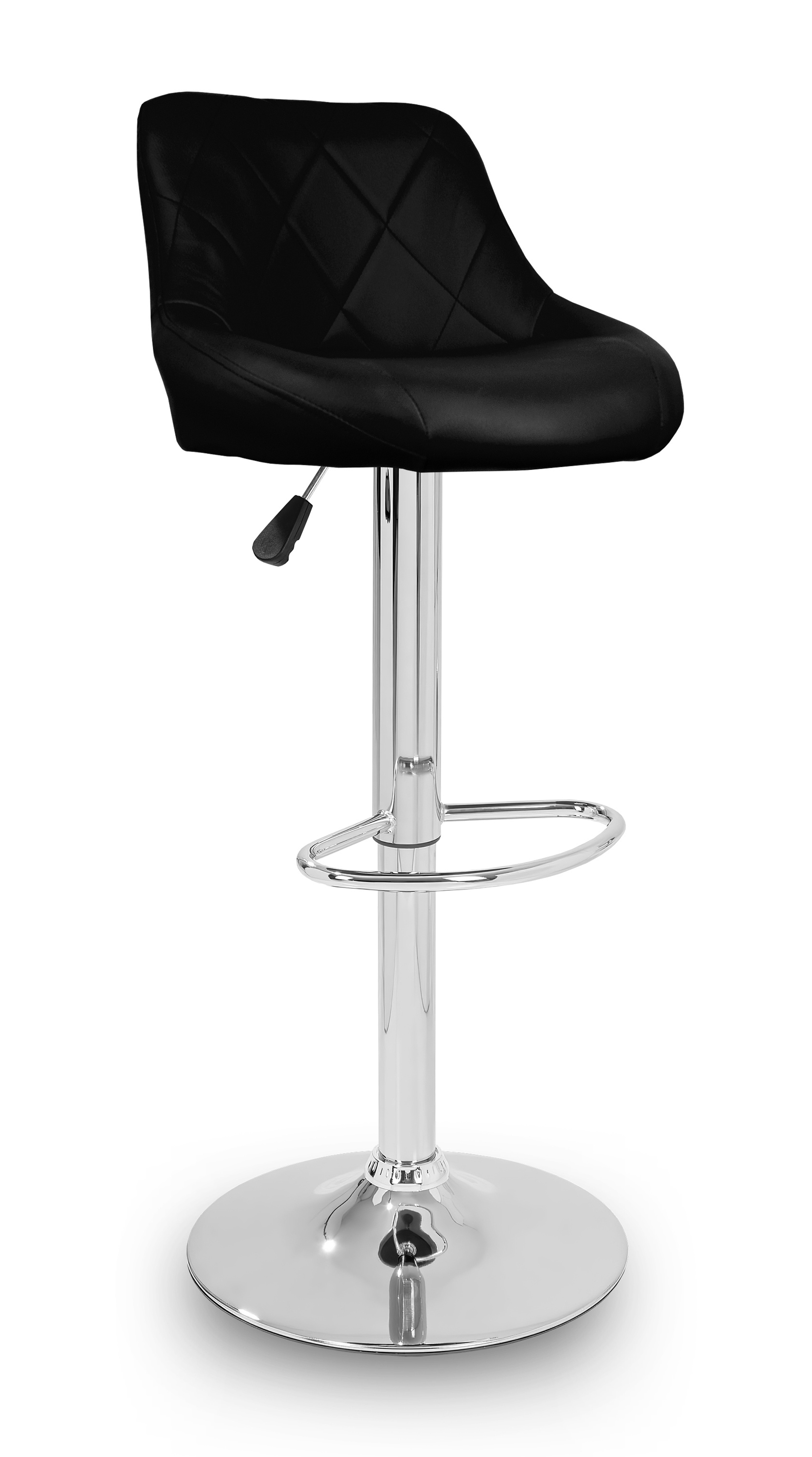 Der Sitz des Stuhls ist mit Kunstleder bezogen und leicht zu reinigen.Der Stuhl hat einen praktischen Fußhocker aus verchromten Metall.Die runde Basis und das Mittelbein sind in glänzendem Chrom.