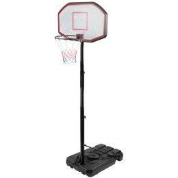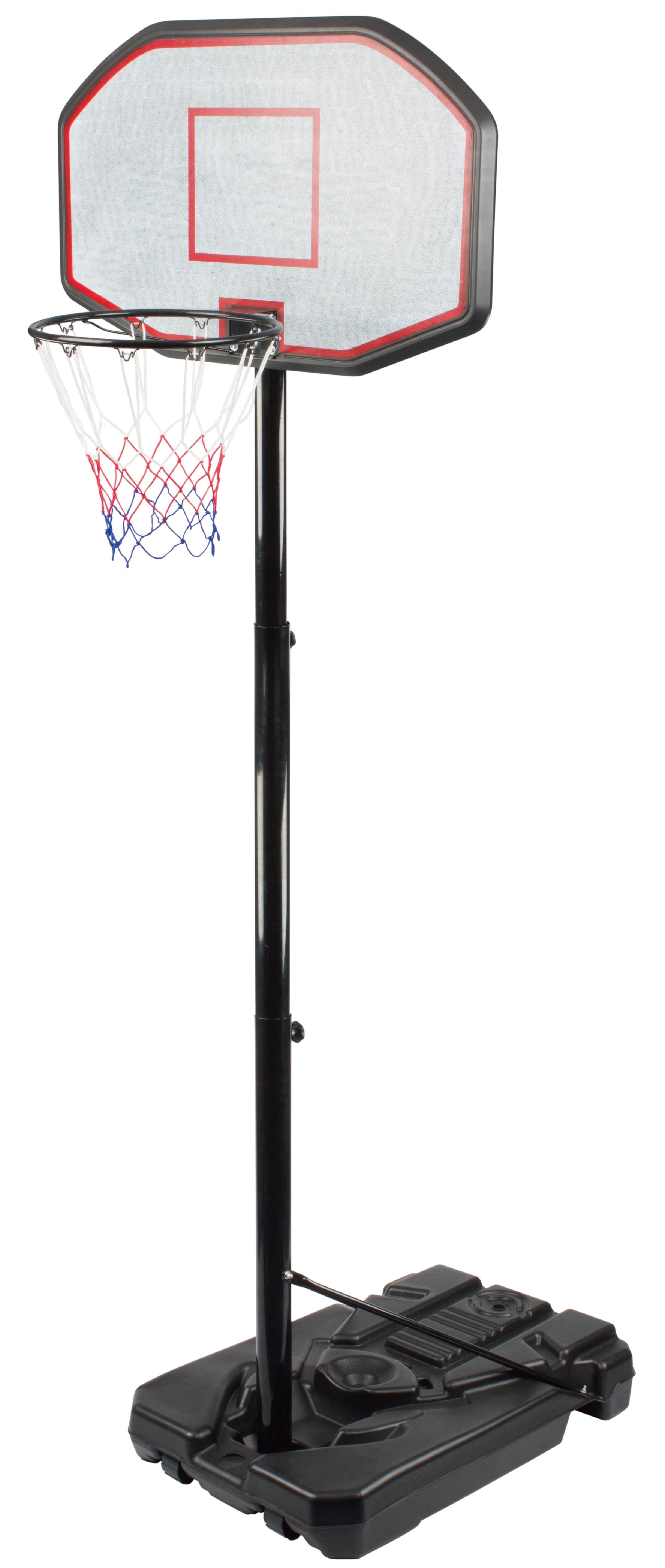 Mobiler Basketballkorb mit verstellbarer Höhe, stabilem Kunststoffdach und Netzrand.