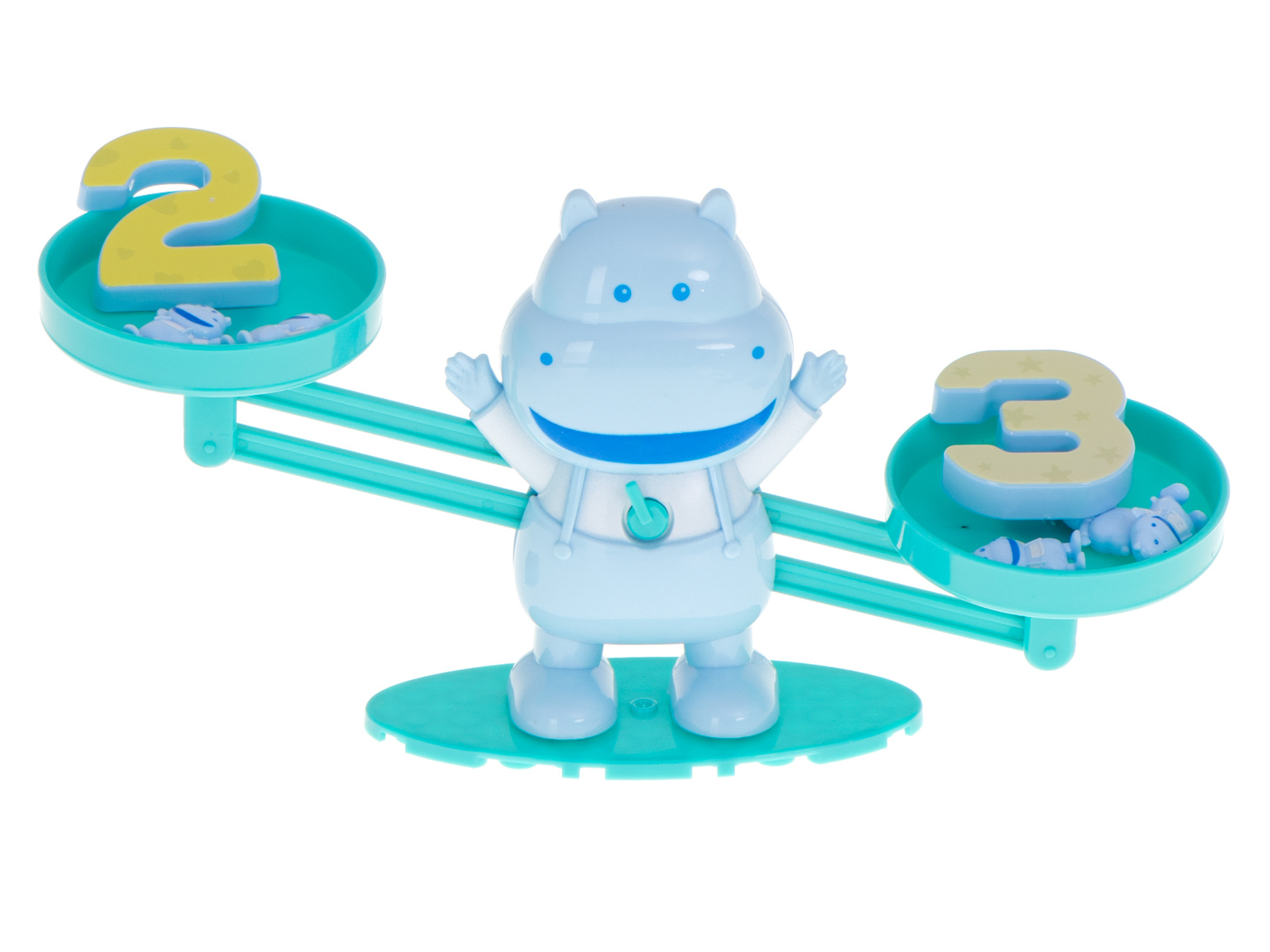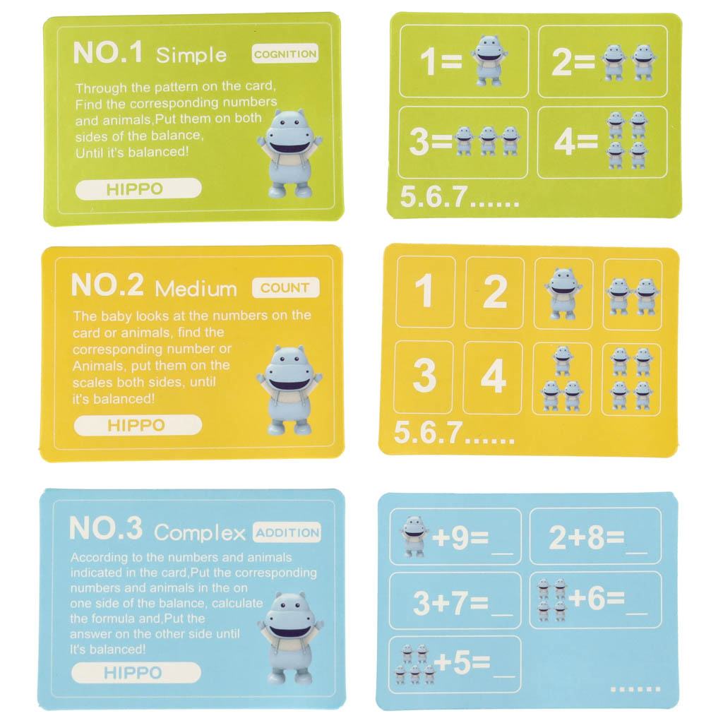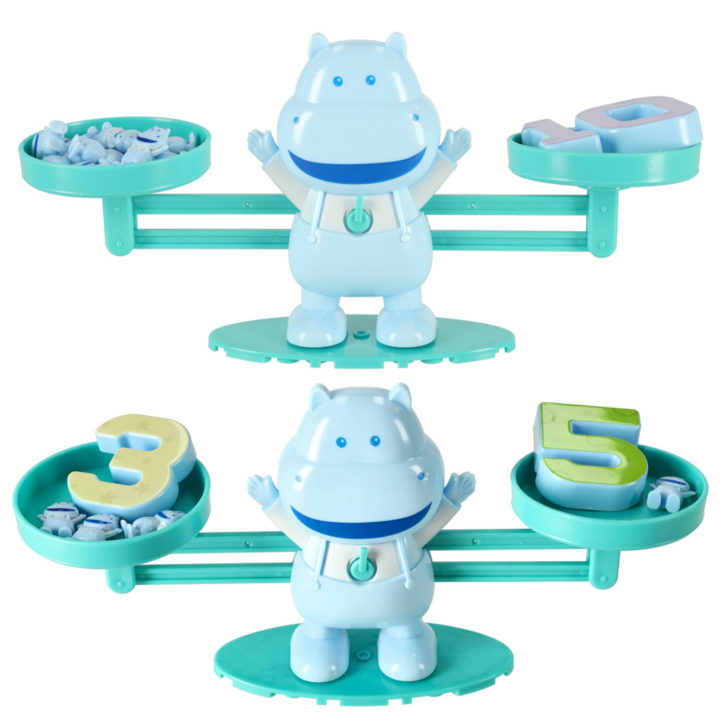 Wie kann man Arithmetik spielerisch und einfach vermitteln? Dieses Nilpferd ist die perfekte Wahl! Sie stellen einfach eine Zahl auf die eine Schale der Waage und die entsprechende Anzahl von Nilpferden auf die andere.