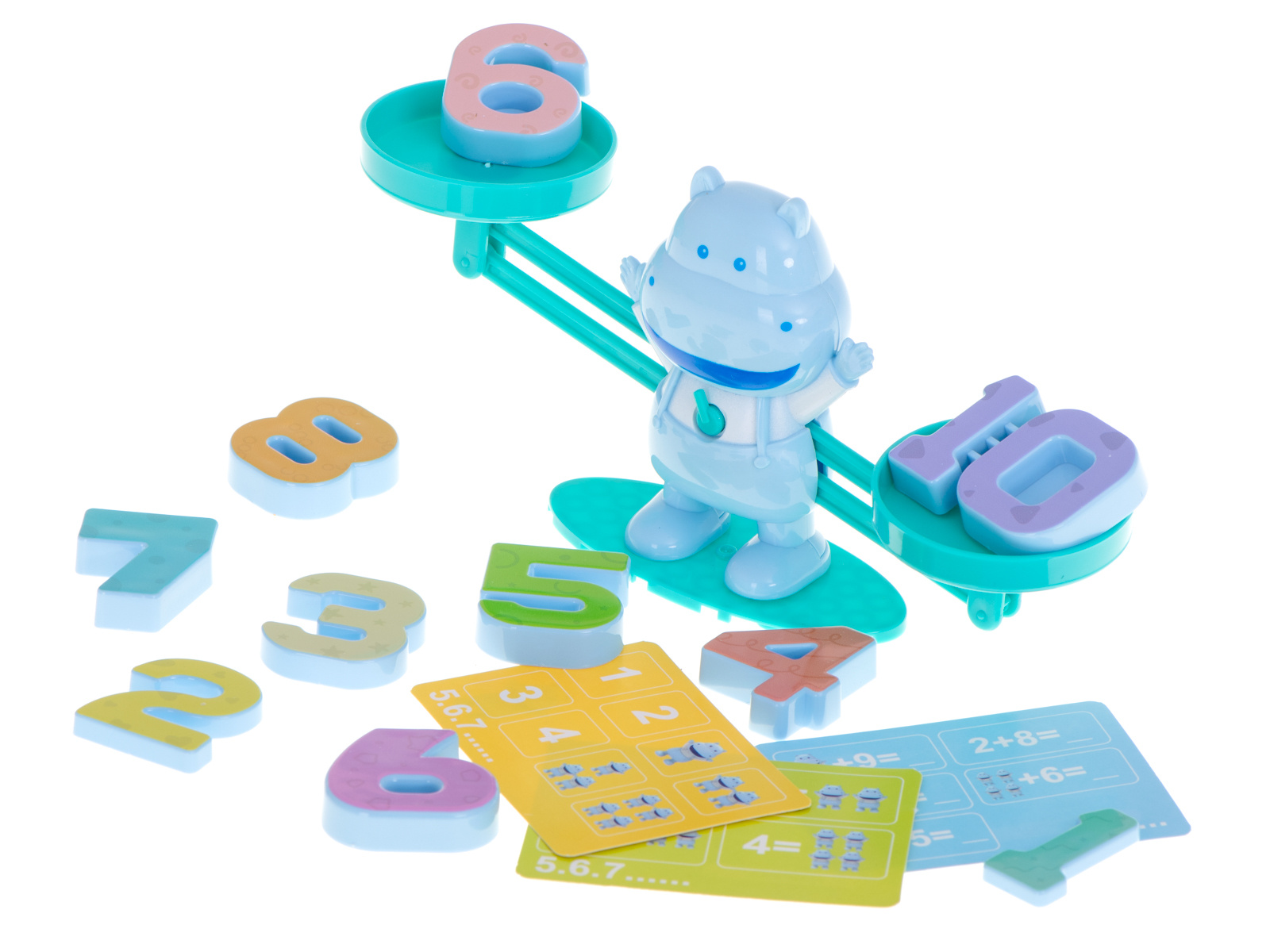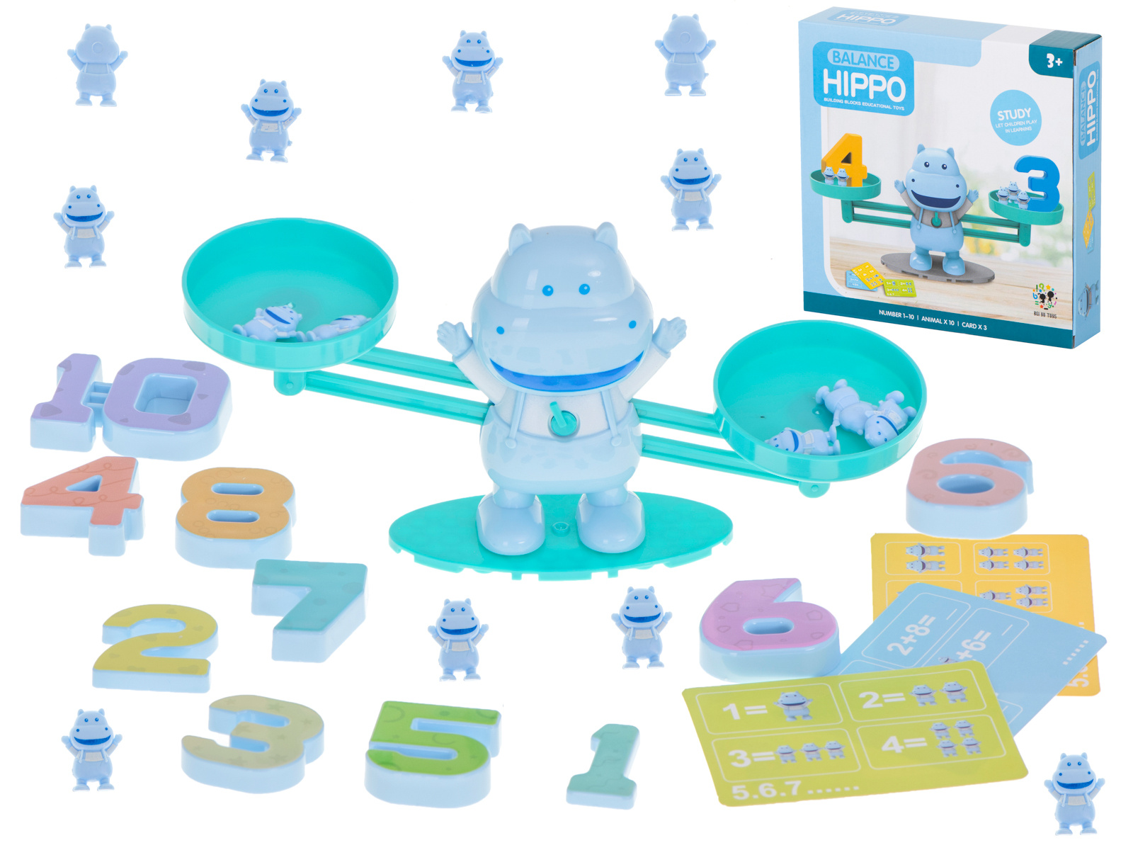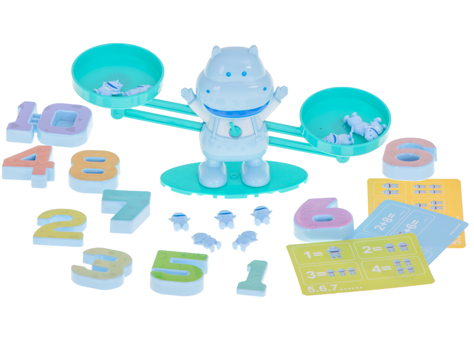 Wie kann man Arithmetik spielerisch und einfach vermitteln? Dieses Nilpferd ist die perfekte Wahl! Sie stellen einfach eine Zahl auf die eine Schale der Waage und die entsprechende Anzahl von Nilpferden auf die andere.