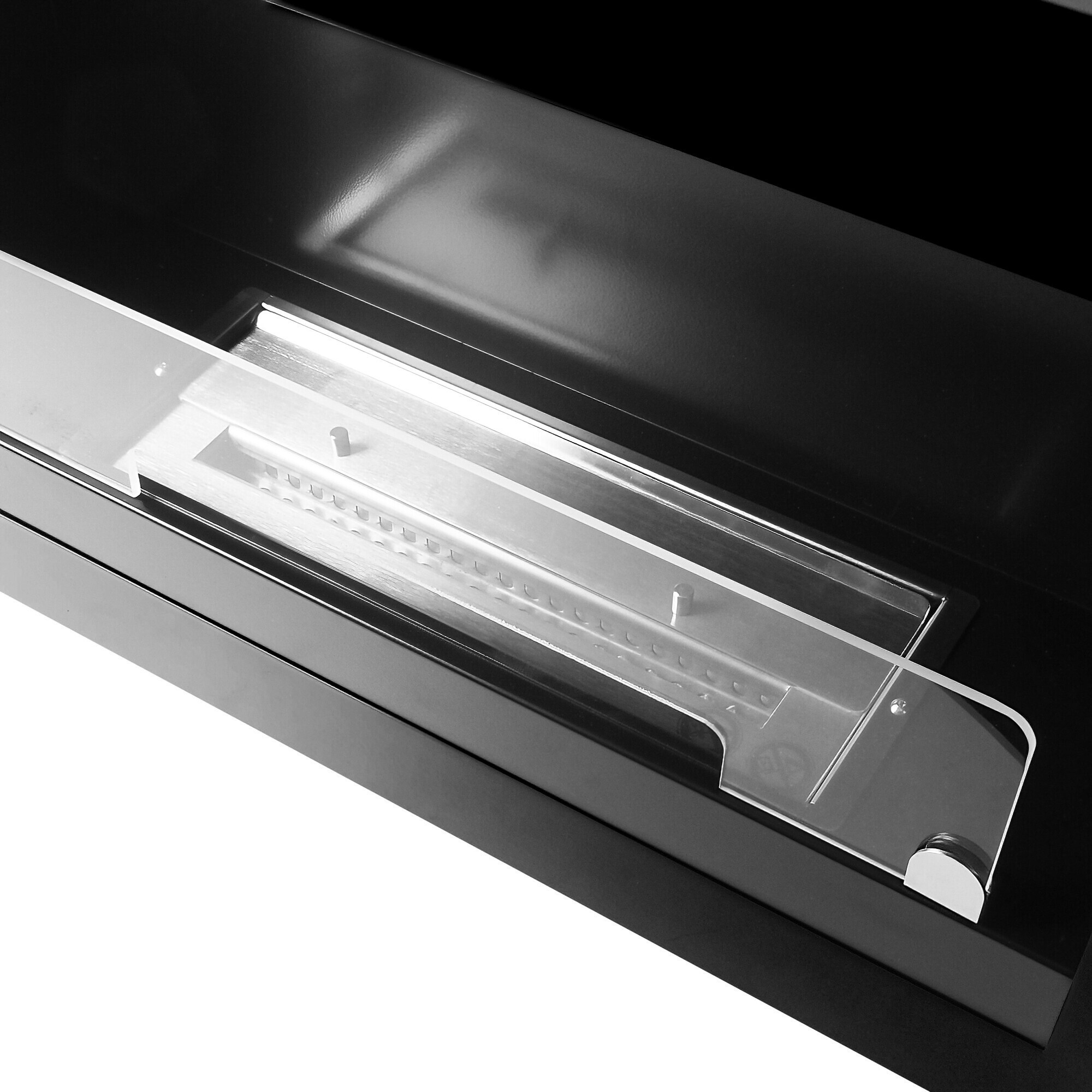 In der Nähe des Kamins sollten keine brennbaren Gegenstände platziert werden, die leicht und schnell Feuer fangen könnten.Wir empfehlen, die Flamme mit dem im Lieferumfang enthaltenen Löscher zu löschen. Der Feuerlöscher garantiert Ihnen ein sicheres Löschen der Flamme.