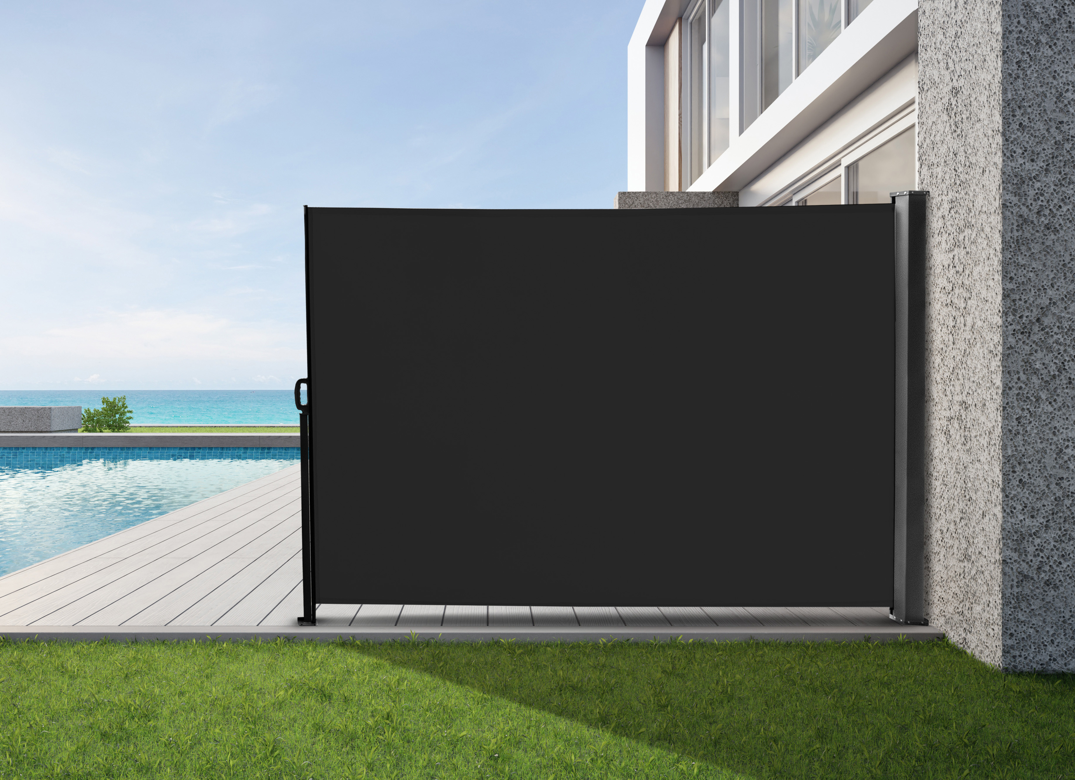 Die Aga-Seitenmarkise bietet Ihnen ungestörte Privatsphäre, wenn Sie auf Ihrem Balkon, Ihrer Terrasse oder in Ihrem Garten sitzen.