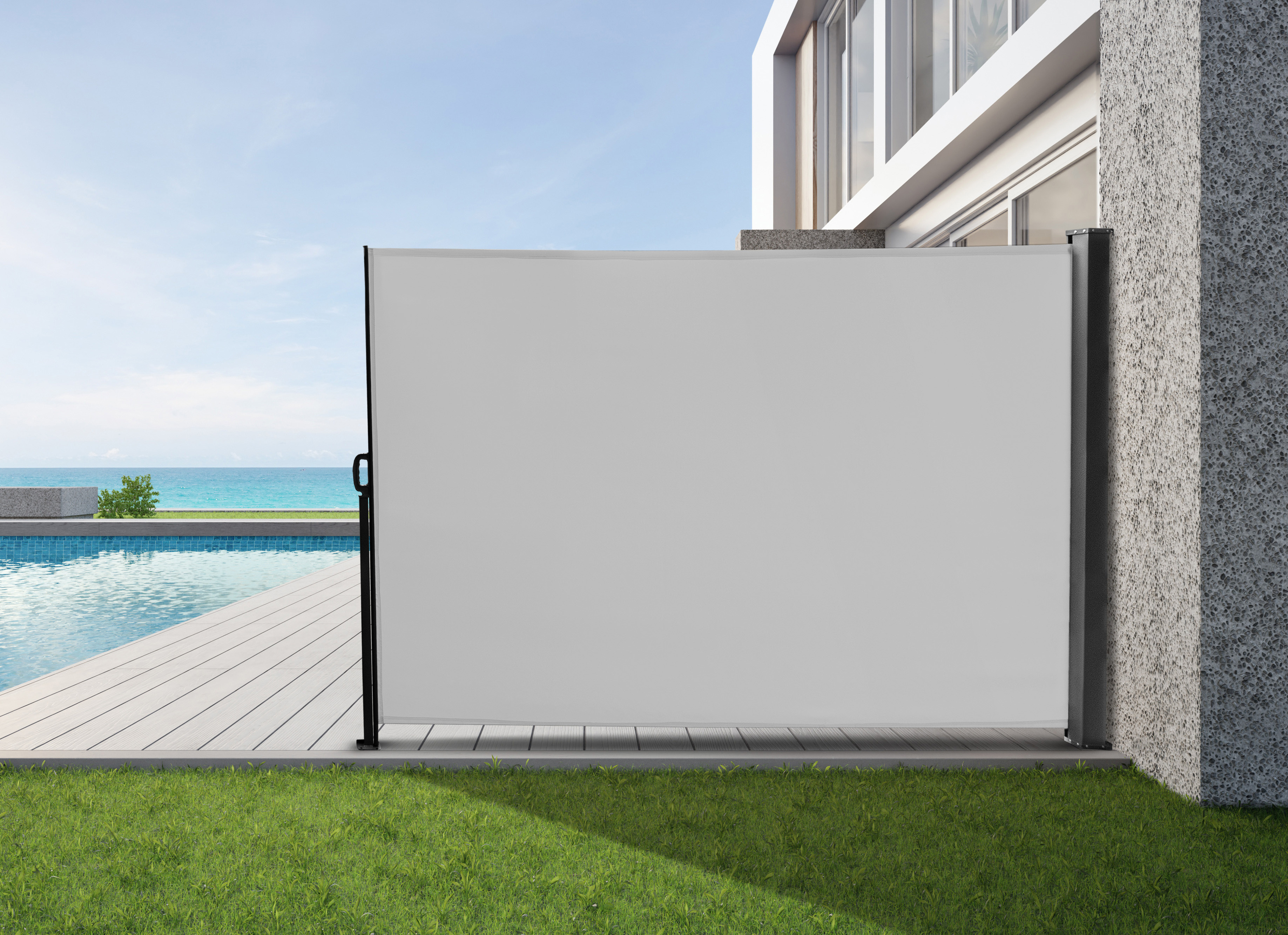 Die Aga-Seitenmarkise bietet Ihnen ungestörte Privatsphäre, wenn Sie auf Ihrem Balkon, Ihrer Terrasse oder in Ihrem Garten sitzen.