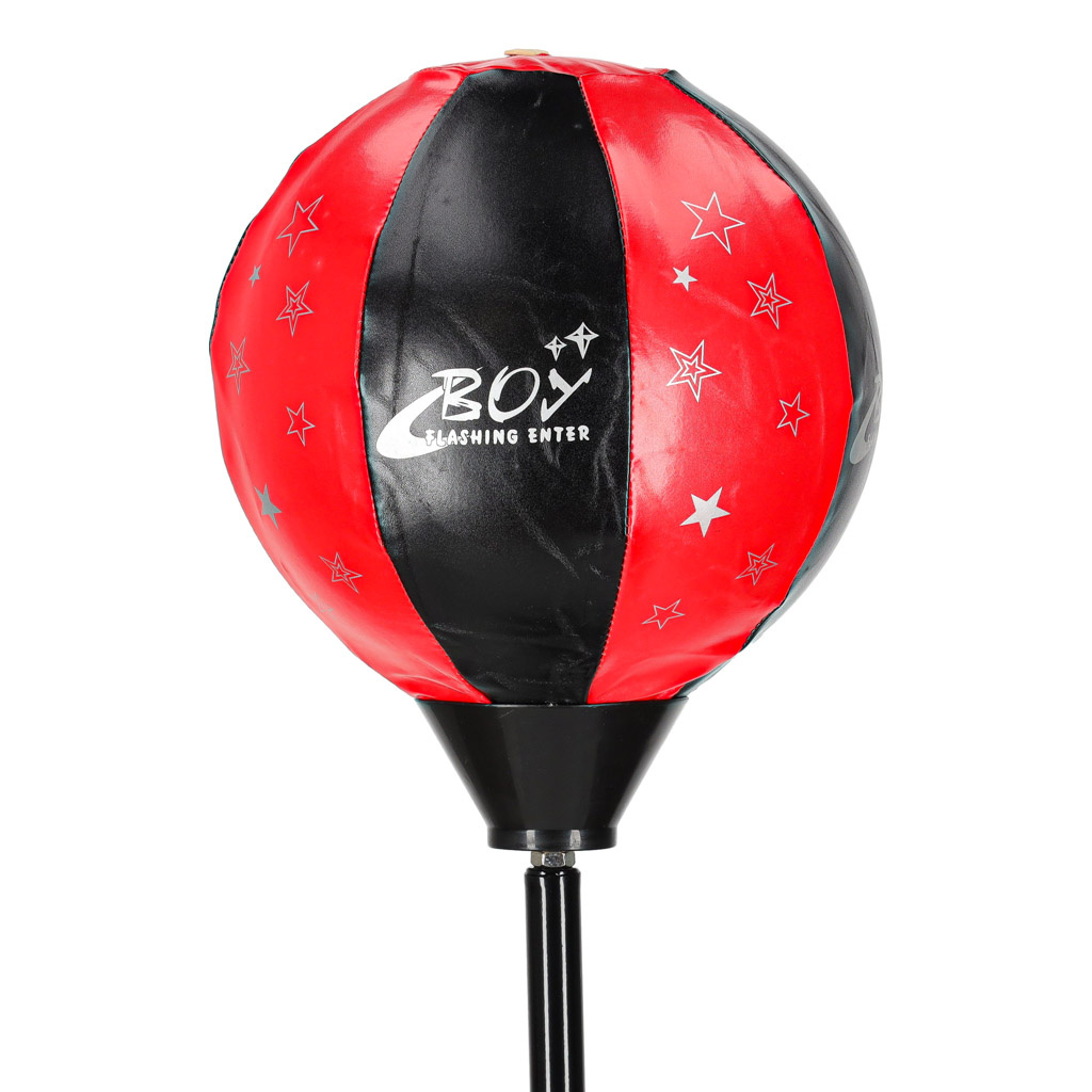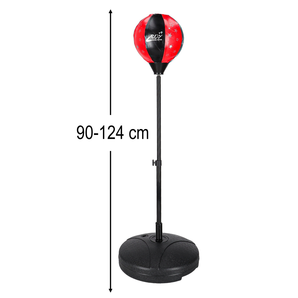 Die Birne ist an einer Stange befestigt, die durch eine Feder mit dem Sockel verbunden ist, um zu verhindern, dass sich das Gerät nach dem Aufprall bewegt. Die Gesamthöhe beträgt 124 cm. Boxhandschuhe sind ebenfalls enthalten.