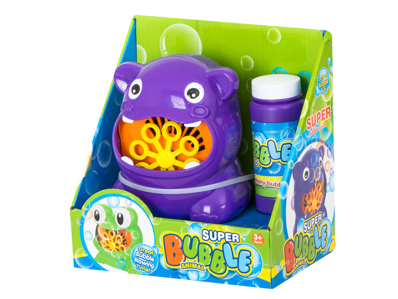 Legen Sie einfach 4 x AA-Batterien ein und gießen Sie die Mischung auf die Blasen. Dann drückst du den Schalter und das Nilpferd beginnt, Blasen zu spucken. Geeignet für Kinder an Sommertagen.