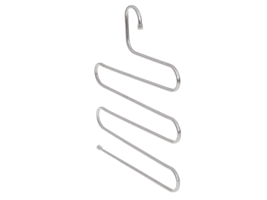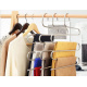 Dieser praktische Hosenbügel ist eine unverzichtbare Ergänzung für jeden Kleiderschrank. Er spart Platz und sortiert die Kleidung richtig. Eine einfache Möglichkeit, Ihre Kleidung zu organisieren. Dank ihm können Sie 5 Hosen auf einen Bügel hängen, ohne dass sie den ganzen Kleiderschrank einnehmen. Ein intelligenter Weg, die Kapazität Ihres Kleiderschranks zu erhöhen.