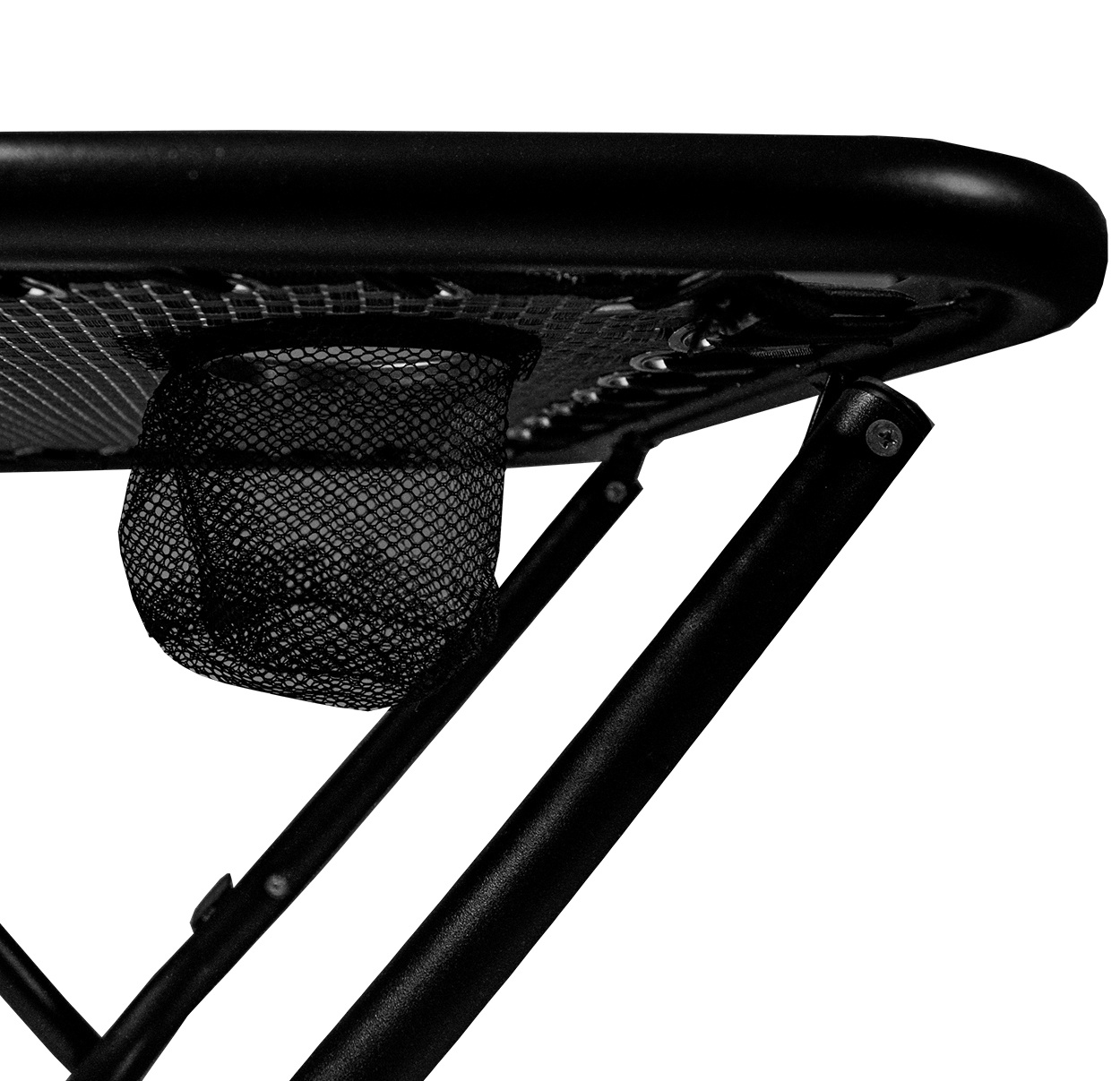 Die 50 cm hohe Tischfläche selbst ist mit zwei Getränkehaltern ausgestattet.