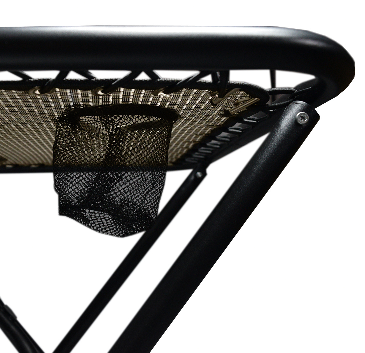 Die Tischfläche selbst, in einer Höhe von 50 cm, ist mit zwei Getränkehaltern ausgestattet.