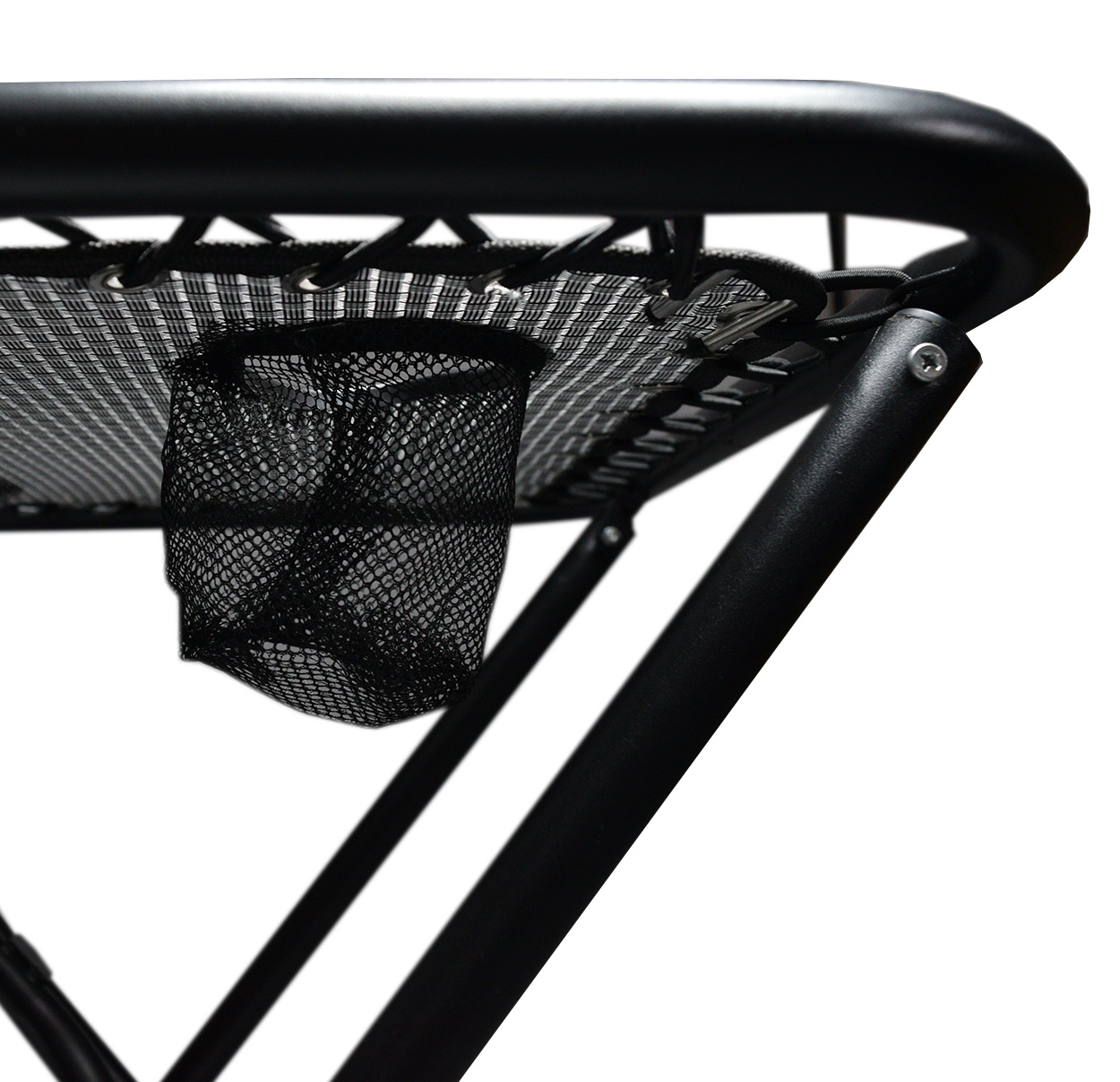 Die 50 cm hohe Tischfläche selbst ist mit zwei Getränkehaltern ausgestattet.