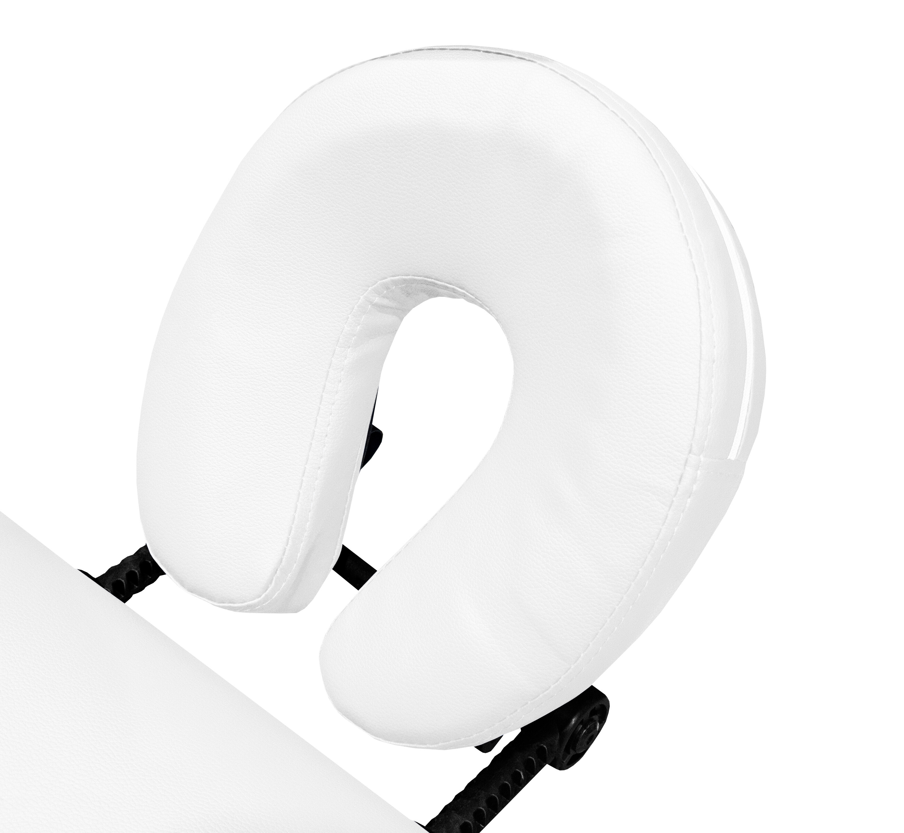 Die Komfortgarantie wird durch die Breite und Länge der Massageliege, die stufenlos verstellbare Kopfstütze, die Gesichtsaussparung mit Verschluss und die abnehmbaren Armlehnen gewährleistet.