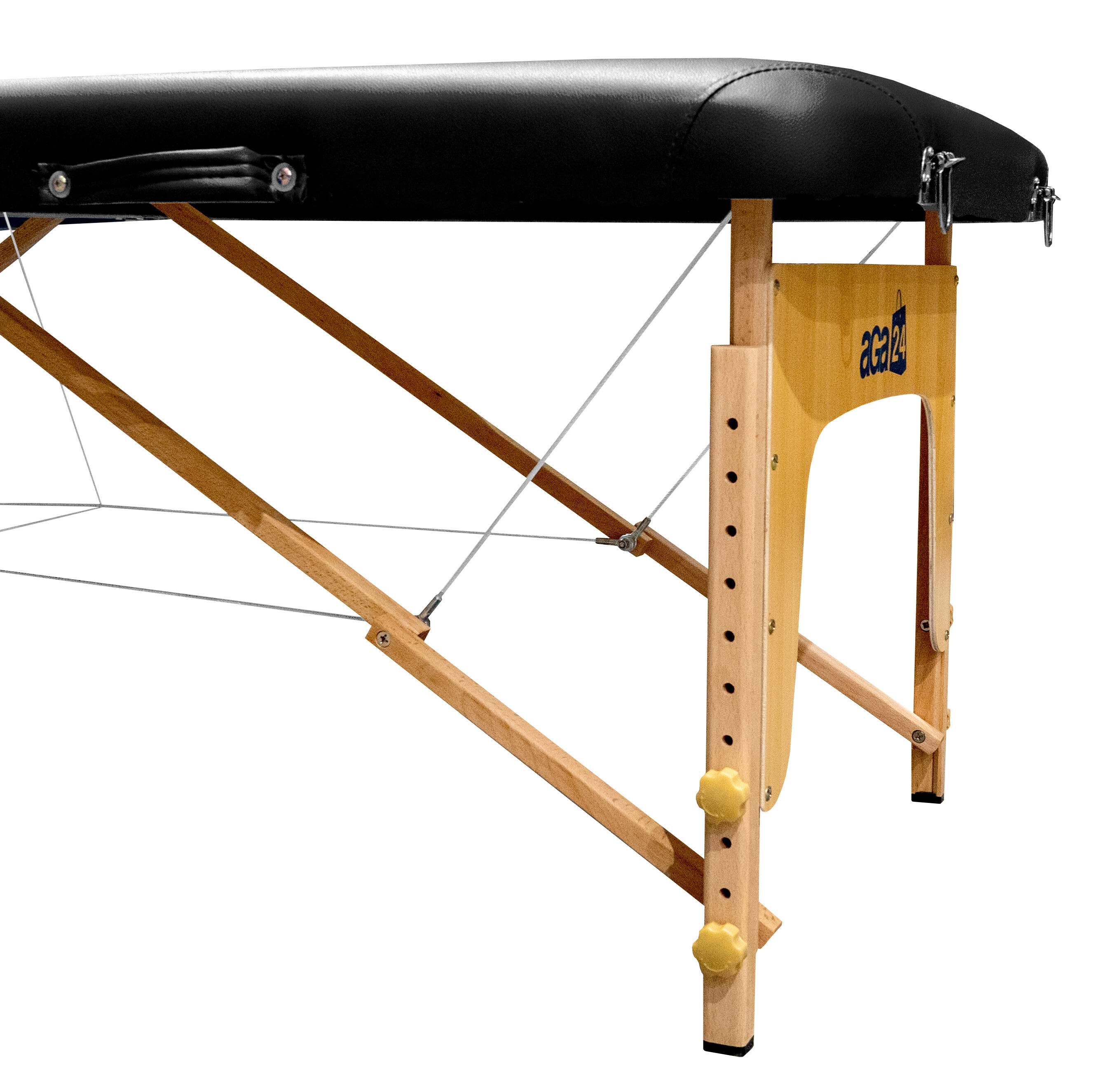 Die robuste Konstruktion aus hochwertigem Holz gehört zu den Hauptvorteilen der Liege. Dank der Verstärkung durch Stahlseile und zwei Sicherungsstifte an jedem Stützbein kann es eine Last von bis zu 250 kg tragen.