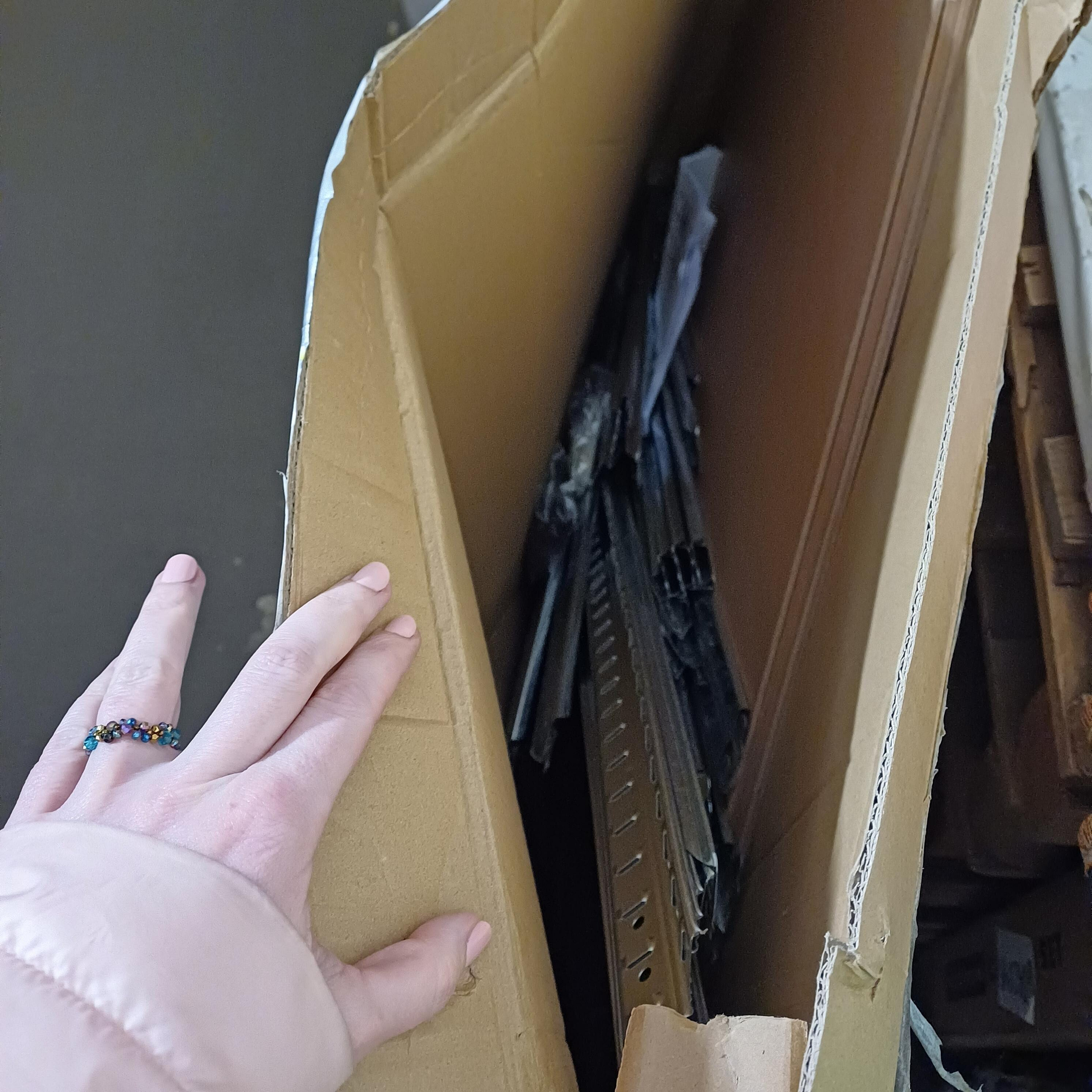 Das Regal hat ein beschädigtes Regalbrett, leichte Kratzer.