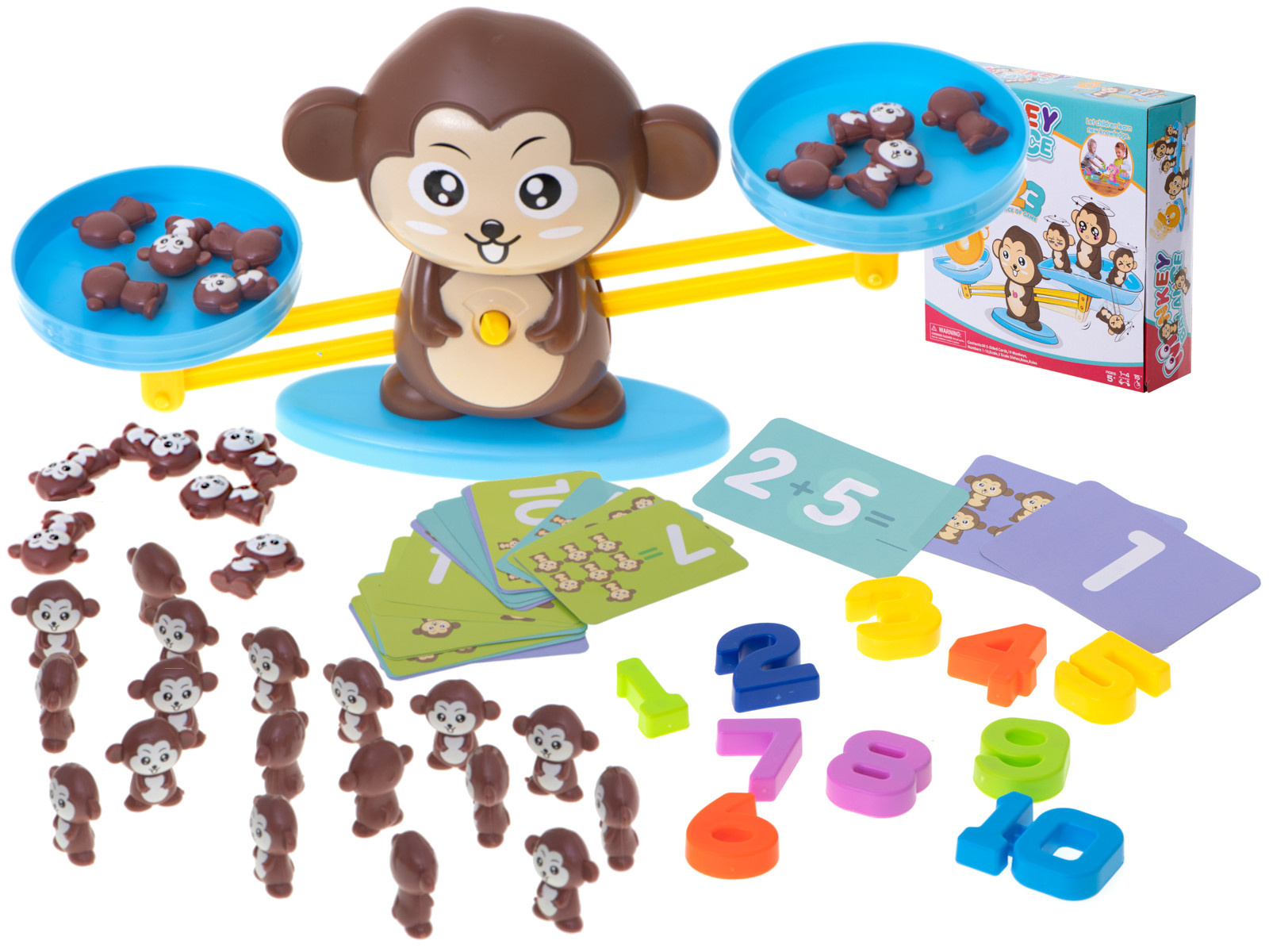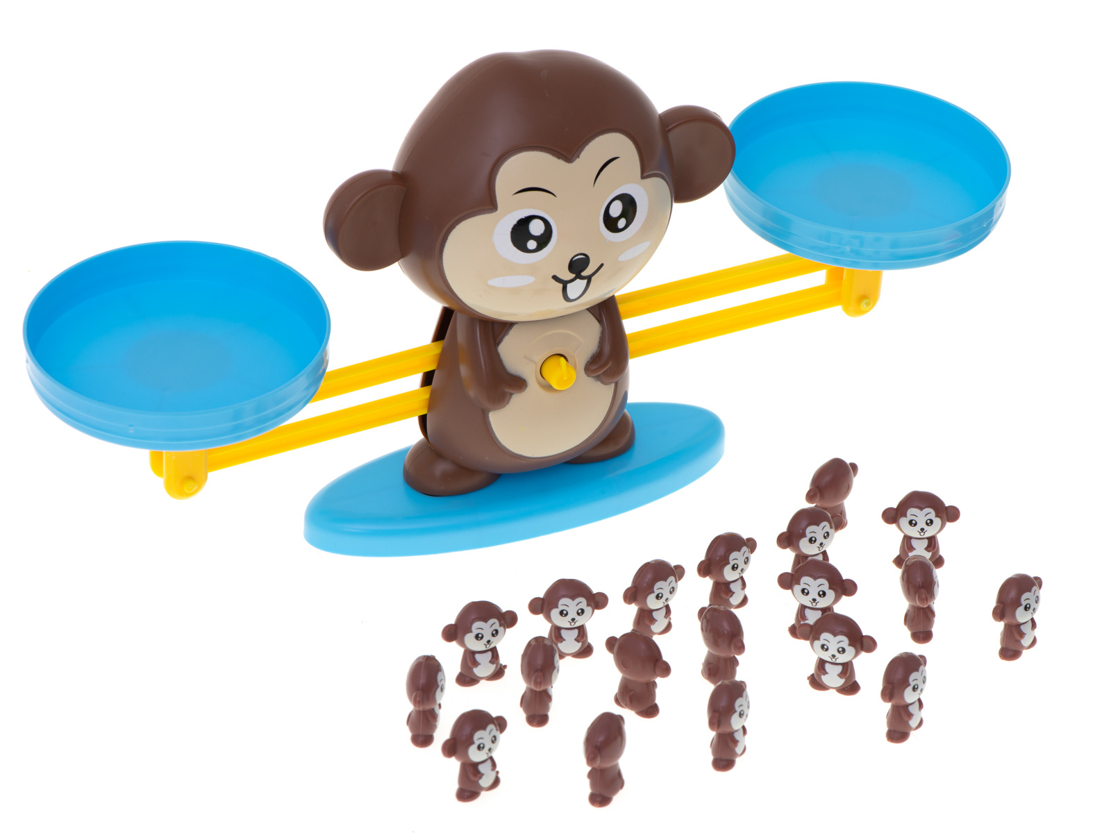 Wie kann man Arithmetik spielerisch und einfach vermitteln? Dieser Affe ist die perfekte Wahl! Sie stellen einfach eine Zahl auf die eine Schale der Waage und die entsprechende Anzahl von Affen auf die andere.