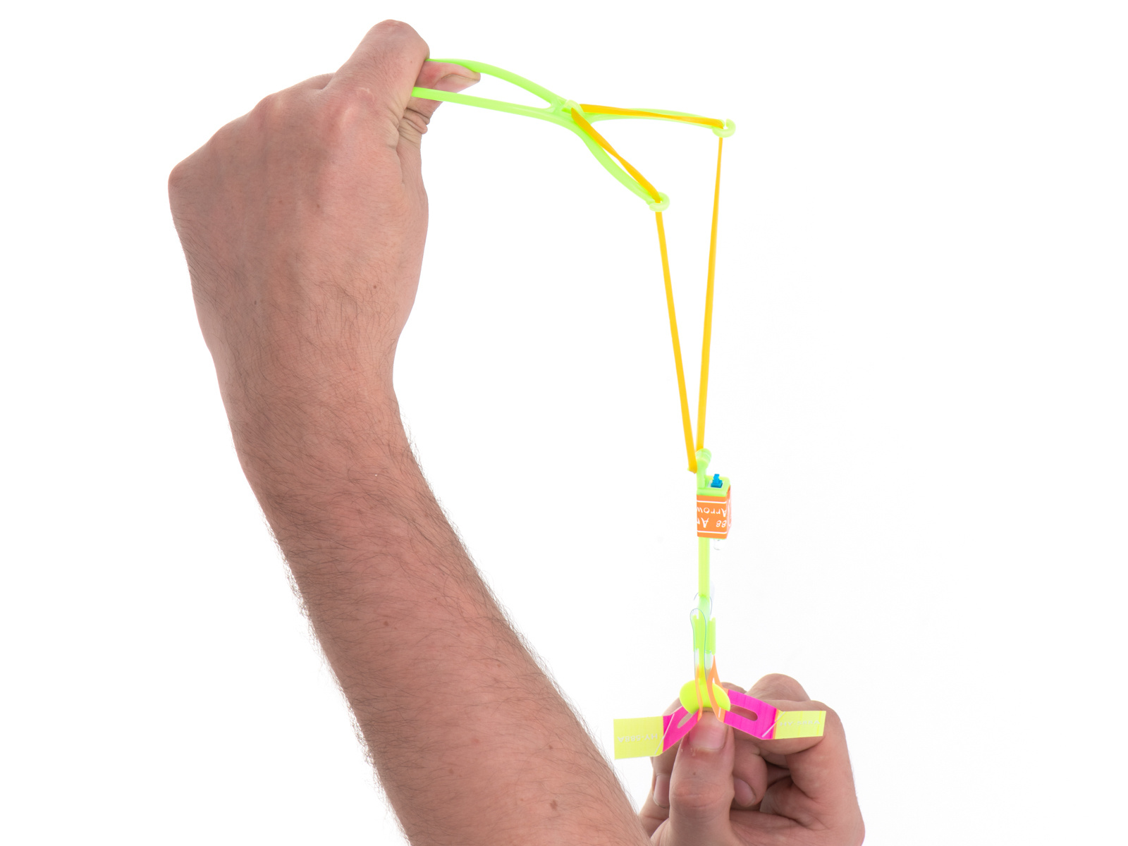 Ein tolles Spielzeug für Kinder! Sie werden viel Spaß mit diesen Schleuderpropellern haben! Die Propeller werden nach dem gleichen Prinzip wie bei der Schleuder betrieben. Haken Sie das Gummiband an der Schlinge in den Kunststoffhaken des Propellers ein und schießen Sie nach oben oder vor sich. Die Propeller beginnen sich zu drehen und fliegen nach oben. Außerdem verfügt das Spielzeug über ein schillerndes LED-Licht, das sich mit einem Knopfdruck steuern lässt. Wenn Sie also die Propeller im Dunkeln starten, werden Sie ein magisches Schauspiel erleben.