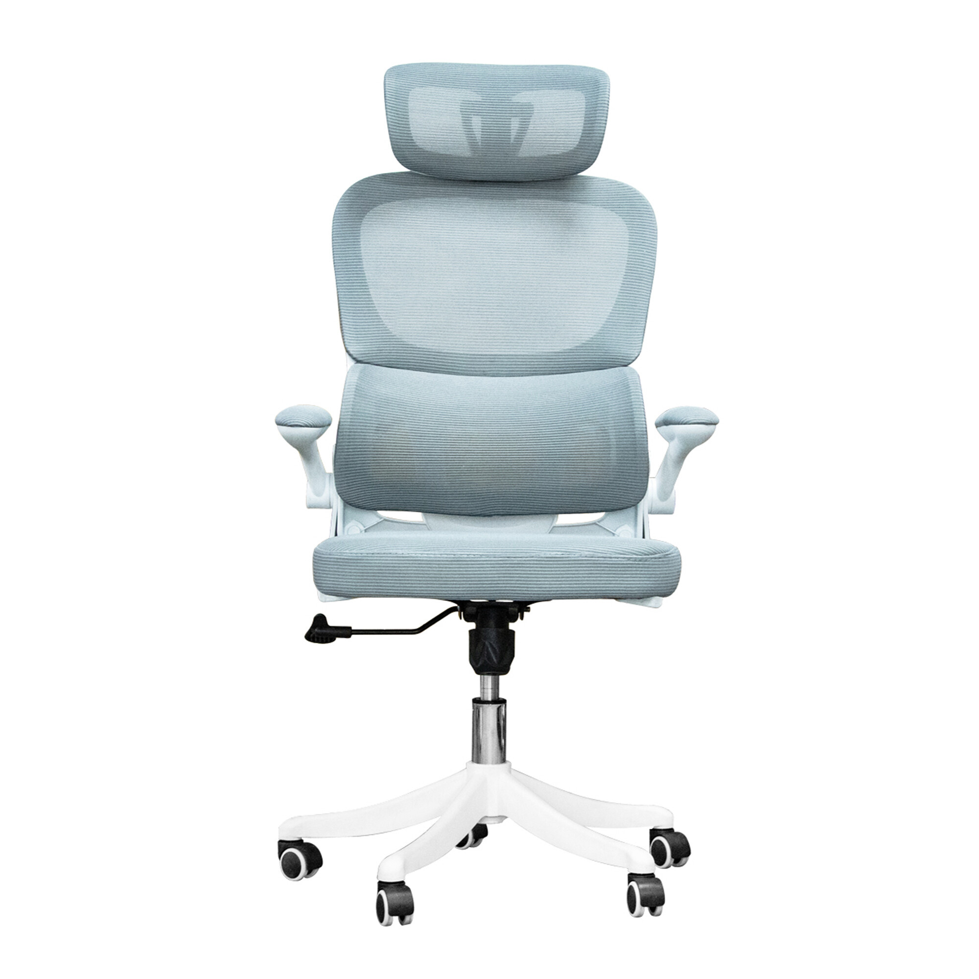 Bei diesem Modell finden Sie eine sehr beliebte Kombination aus Stoff und Netz. Diese Materialien vereinen unschätzbare Atmungsaktivität mit dem notwendigen Komfort. Es eignet sich also hervorragend für das ganztägige Sitzen bei der Arbeit..