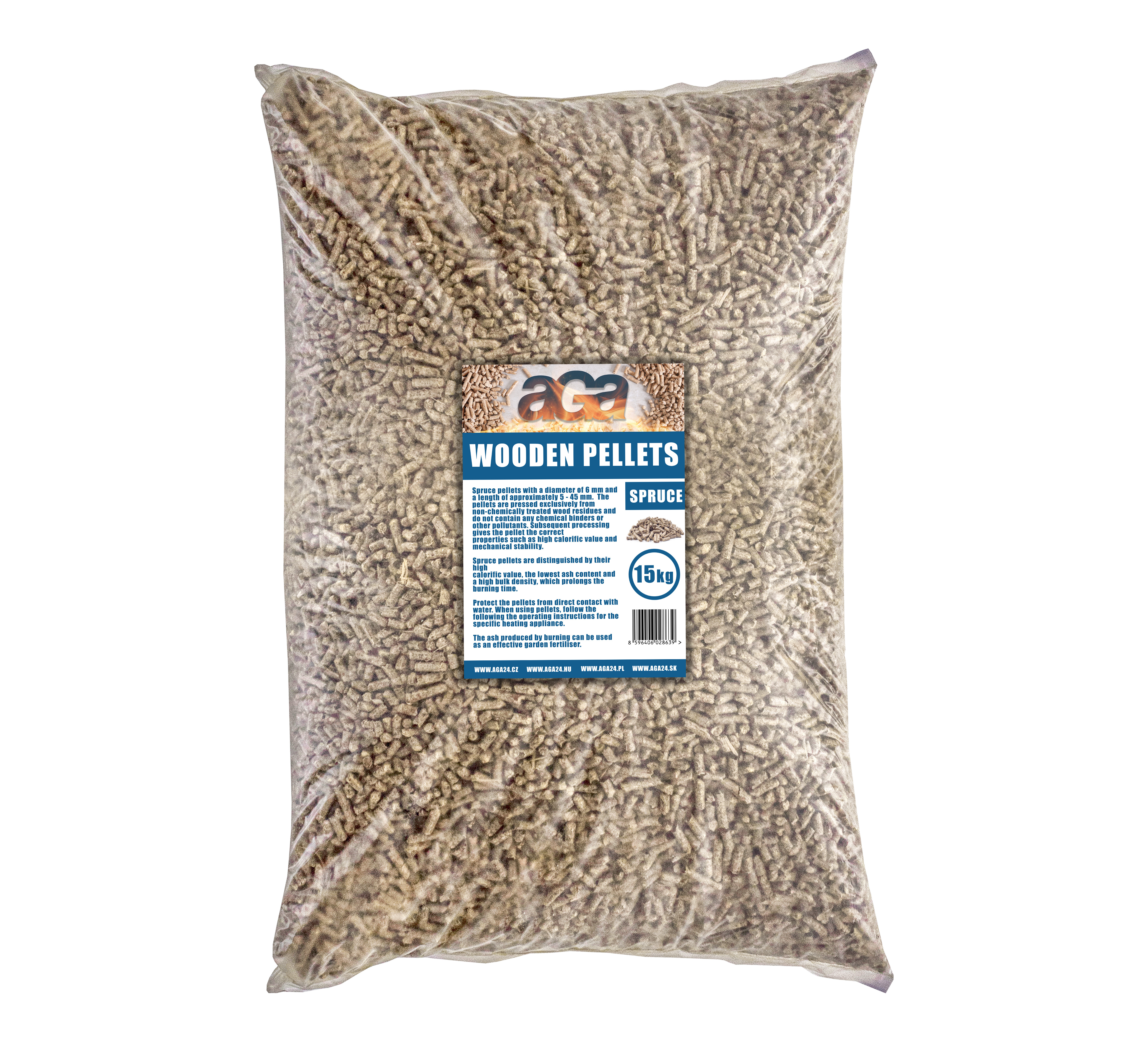 Die Pellets sind in PE-Verpackungen von 15 kg verpackt. Dies verhindert das Eindringen von Feuchtigkeit und ermöglicht gleichzeitig eine saubere und staubfreie Handhabung bei der Lagerung und Erwärmung.