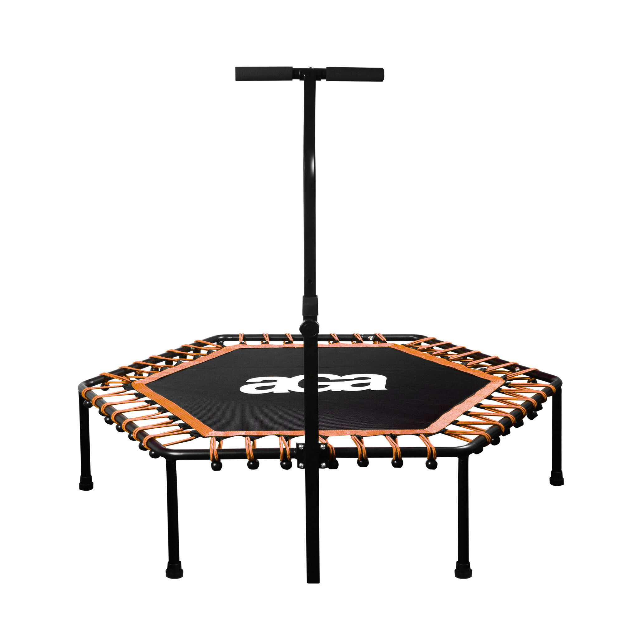 Das Trampolin Aga Fitness 130 cm (4 ft) ist mit einem Haltegriff ausgestattet, der häufig bei Jumping-Stunden verwendet wird. Der Griff kann montiert und wieder demontiert werden.