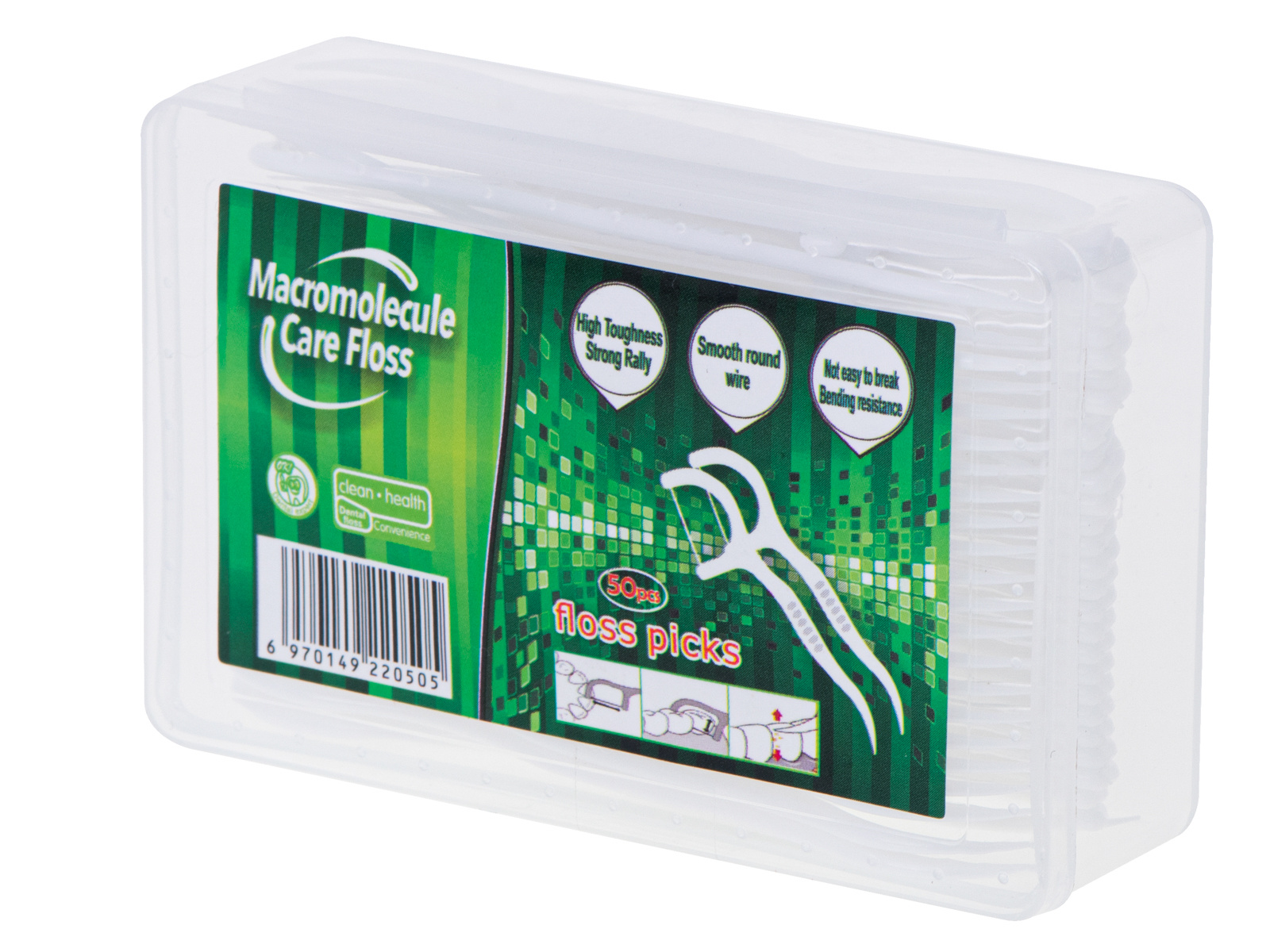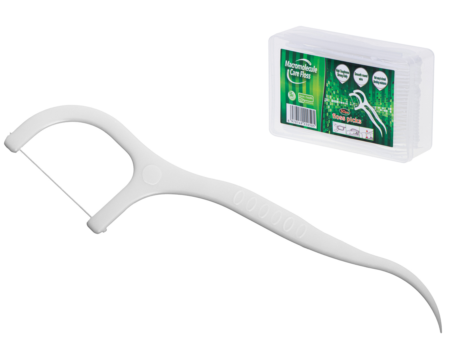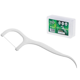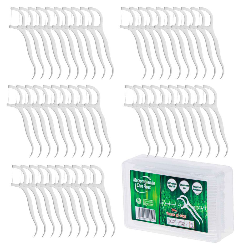 Handliches und sehr praktisches 2-in-1-Mundhygiene-Set: Zahnseide mit Zahnstocher. Auch tagsüber leicht zu bedienen. Kann nach dem Ausspülen wiederverwendet werden. Enthält 50 Stück in einer Schachtel verpackt.